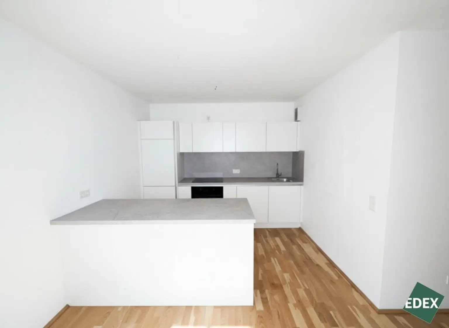 Der großzügige Wohnraum mit offener Kochnische schafft ein helles, einladendes Ambiente und führt direkt auf die großzügige Balkon/Loggia – ideal zum Entspannen im Freien.