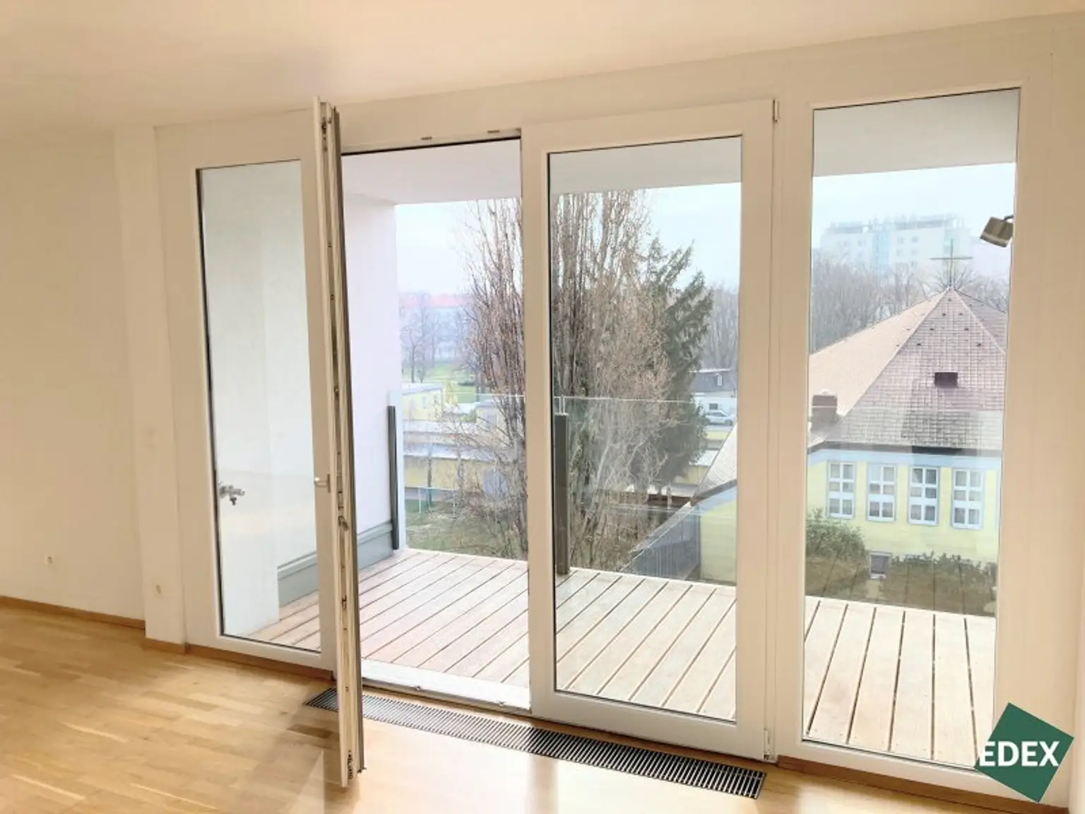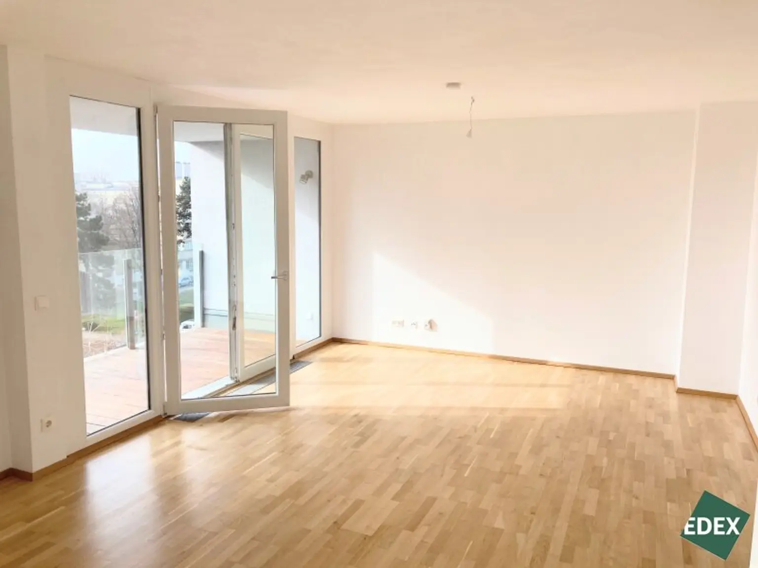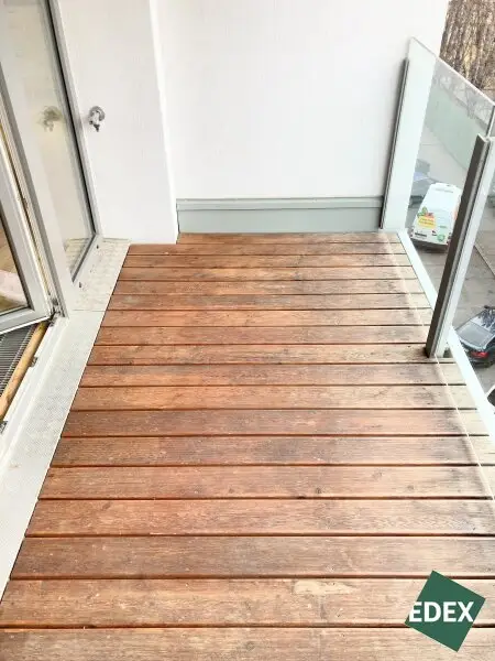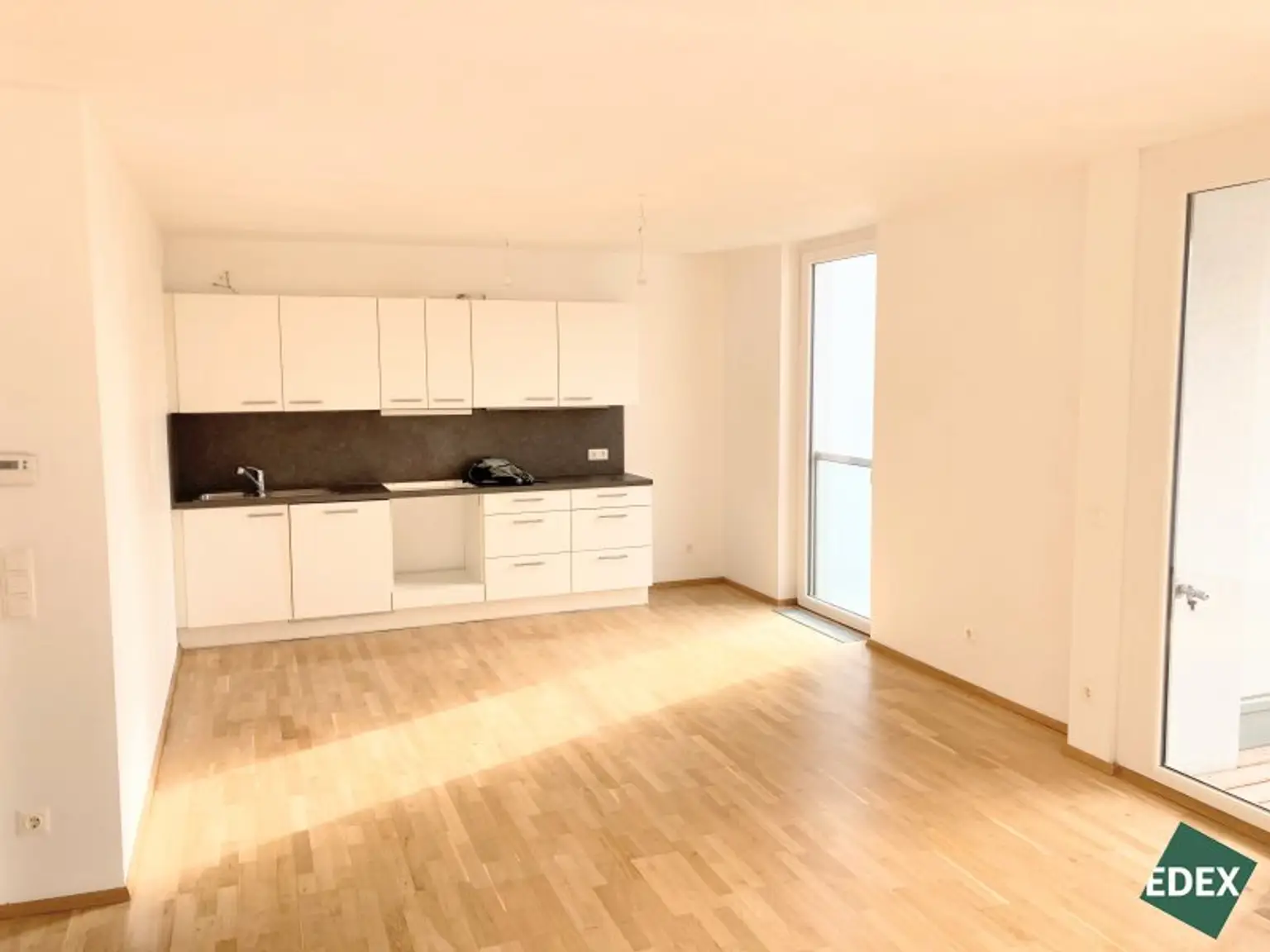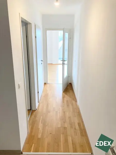 Die ca. 63 m² große 2-Zimmer-Wohnung befindet sich im 4. Stockwerk (mit Lift) eines gepflegten Neubaus im 21. Wiener Gemeindebezirks. Die Wohnung verfügt über einen großen Vorraum, eine separate WC-Einheit, ein Badezimmer mit Badewanne und Waschmaschinen-Anschluss, ein Schlafzimmer (inkl. Außenbeschattung), sowie über ein geräumiges Wohnzimmer mit Wohnküche (inkl. Geräte) mit Zugang zur ca. 7 m² großen Loggia. Ein Kellerabteil sorgt für zusätzlichen Stauraum. Die Wohnräume sind mit Parkett und die Nassräume mit Fliesen ausgestattet. Im Schlafzimmer gibt es ein außenliegendes Rollo. Geheizt wird mittels Fernwärme.