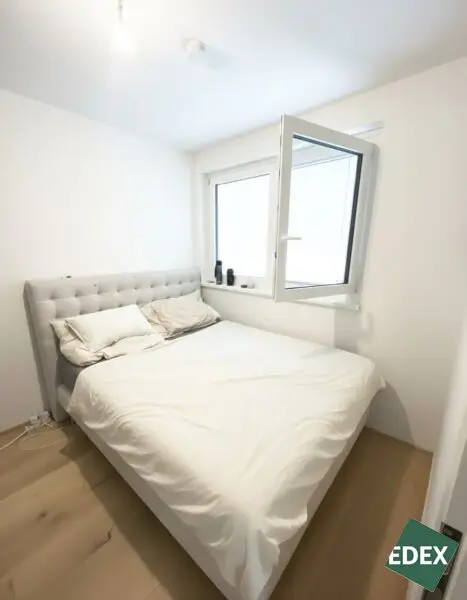 Zur Vermietung gelangt eine schöne 2-Zimmer-Wohnung in urbaner Atmosphäre. Die lichtdurchflutete Wohnung befindet sich im 1. Obergeschoß und verfügt über einen Vorraum, ein modernes Badezimmer mit Dusche, WC und Waschmaschinenanschluss, eine großzügige, moderne Wohnküche, ein Schlafzimmer, sowie über eine Loggia. Der Außenbereich ist sowohl über das Wohnzimmer als auch über das Schlafzimmer begehbar. Die Fenster sind mit einem außenliegenden Sonnenschutz versehen. Die Wohnräume sind mit hochwertigen Parkettböden und die Nassräume sind mit eleganten Fliesen ausgestattet. Im Haus befinden sich Kinderwagen- und Fahrradabstellräume, Paketboxen sowie eine Tiefgarage. Die Wohnungen stehen ab sofort zur Verfügung und werden auf 5 Jahre befristet vermietet.