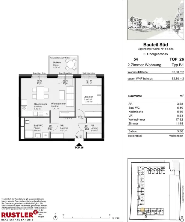 52,80 m² große