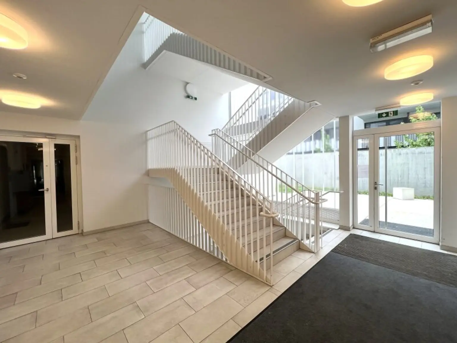 Das moderne Haus ist sehr ruhig gelegen, der Hauseingang hat ein einladendes Ambiente.