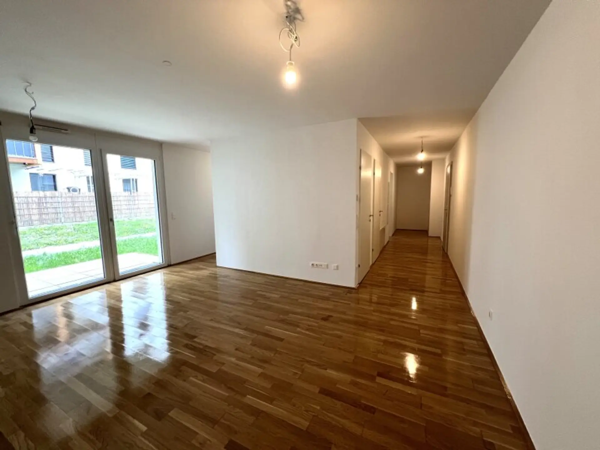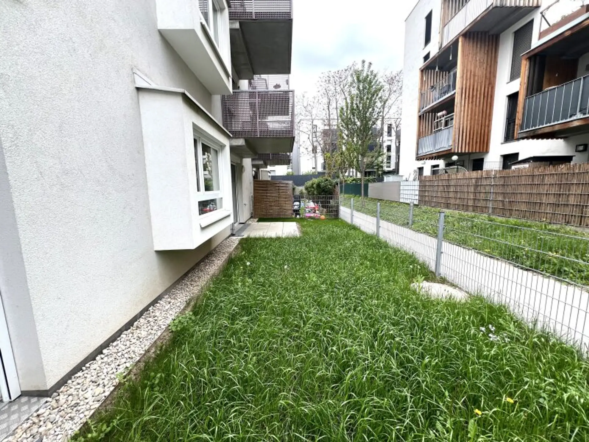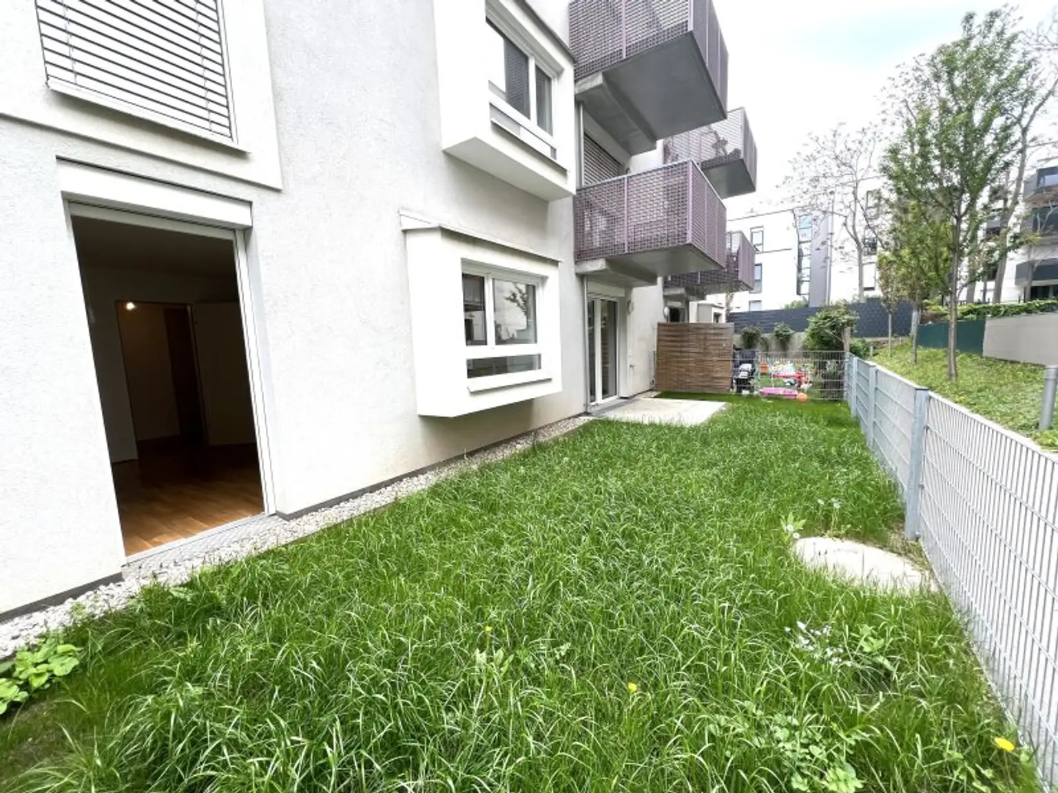 Diese ca. 56,5 m² große, attraktive Wohnung mit einer ca. 6 m² großen Terrasse und einem ca. 38 m² großen Garten befindet sich in einem im Jahr 2018 erbauten Gebäude im Erdgeschoss.