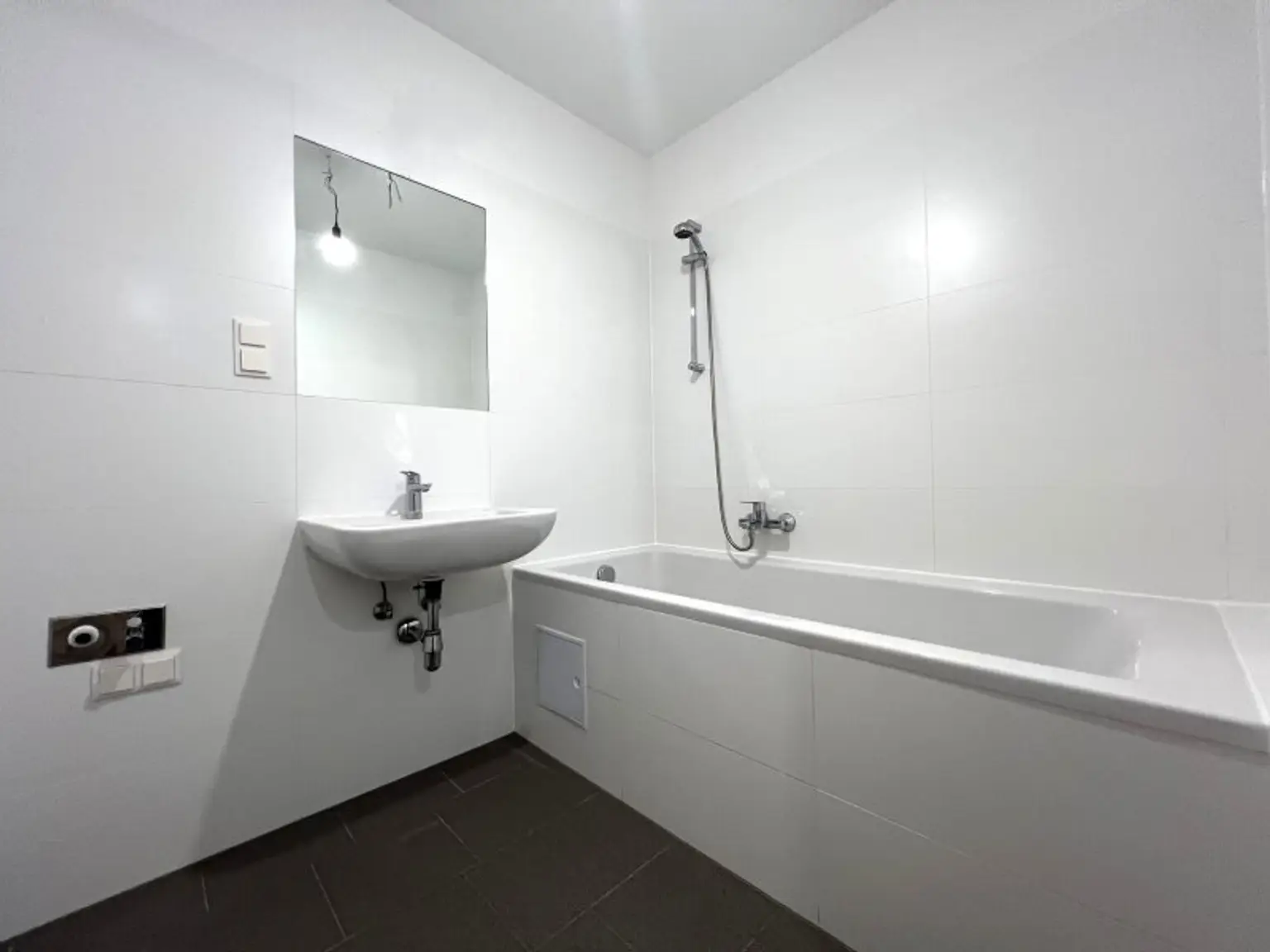 * Badezimmer mit Badewanne, Waschbecken, WM-Anschlüsse