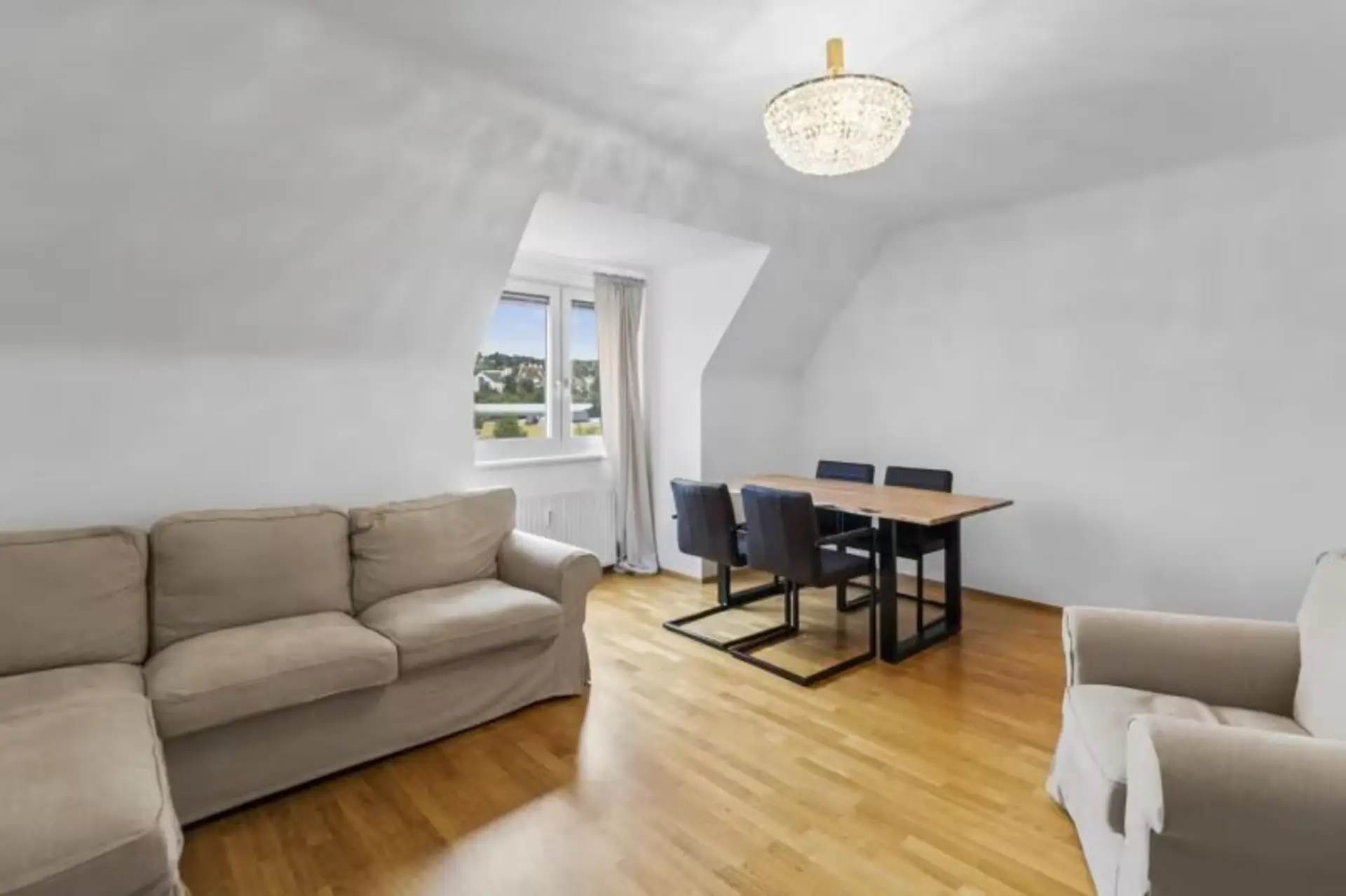 Die Wohnung befindet sich im Dachgeschoss eines gepflegten Wohnhauses und wurde umfassend saniert. Hochwertiger Eichenparkettboden, eine voll ausgestattete Küche mit praktischem Abstellraum/Speis sowie eine Klimaanlage sorgen für modernen Wohnkomfort. Die Einheit wird derzeit erfolgreich kurzzeitvermietet – eine sofortige Weiterführung ist problemlos möglich.