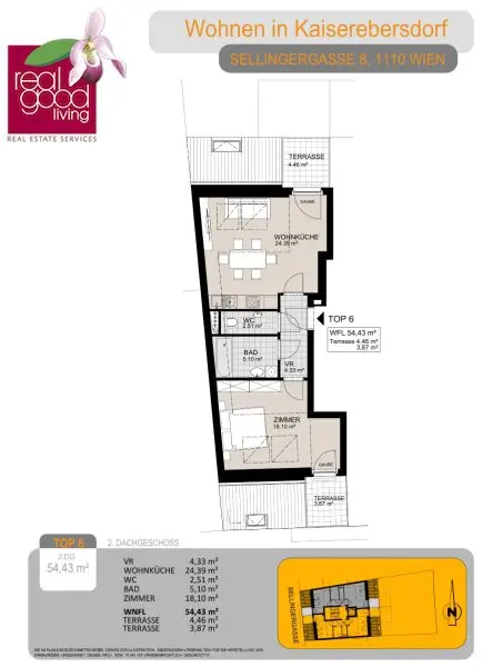 Die 2-Zimmer-Wohnung TOP 6 befindet sich im 2. Dachgeschoss eines modernen Neubauprojekts in der Sellingergasse in Wien-Simmering und überzeugt durch einen durchdachten Grundriss, hochwertige Ausstattung sowie eine angenehme Wohnatmosphäre.