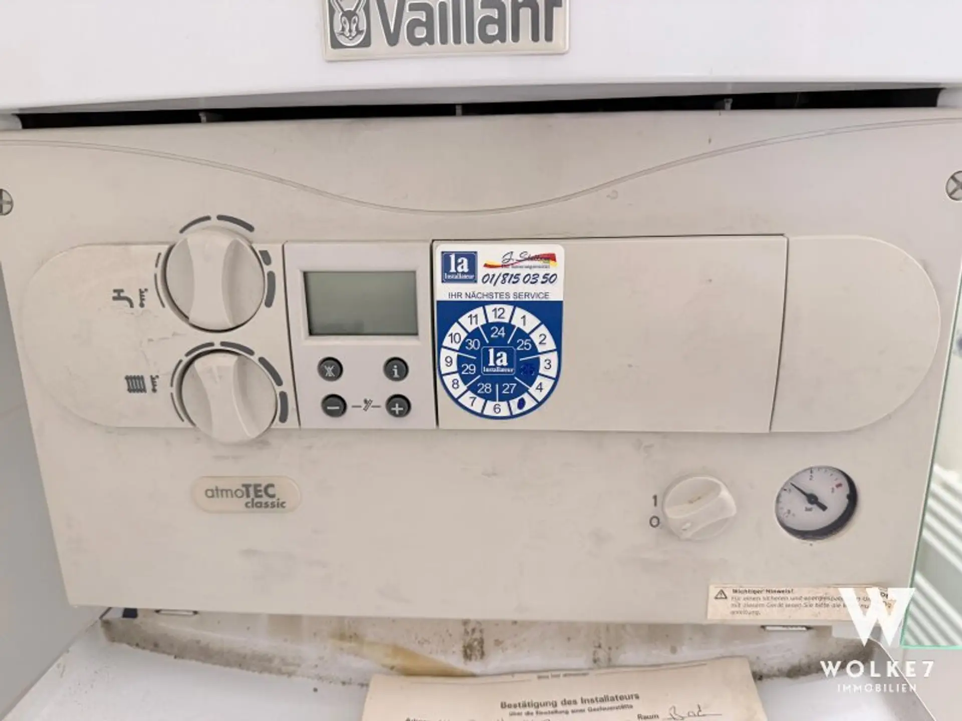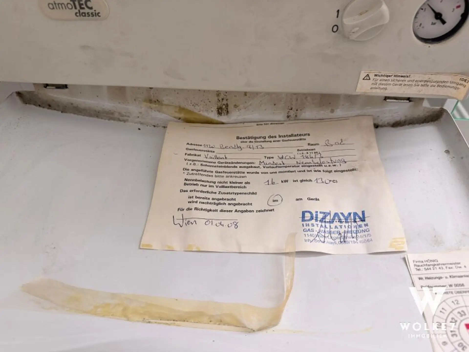 Die Küche ist mit Elektroherd, Backofen, Dunstabzug, Spüle und Kühlschrank ausgestattet. In den beiden Zimmern befinden sich praktische Schränke, die auf Wunsch entfernt werden können. Die Beheizung erfolgt mittels Gas-Etagenheizung.