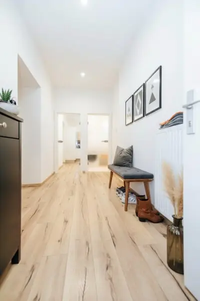Beim Betreten der Wohnung empfängt Sie der großzügige Vorraum, der mit hochwertigen Einbauspots ideal ausgeleuchtet ist. Hier gibt es ausreichend Platz für eine Garderobe und zusätzlichen Stauraum. Vom Vorraum aus gelangen Sie in alle Räume.