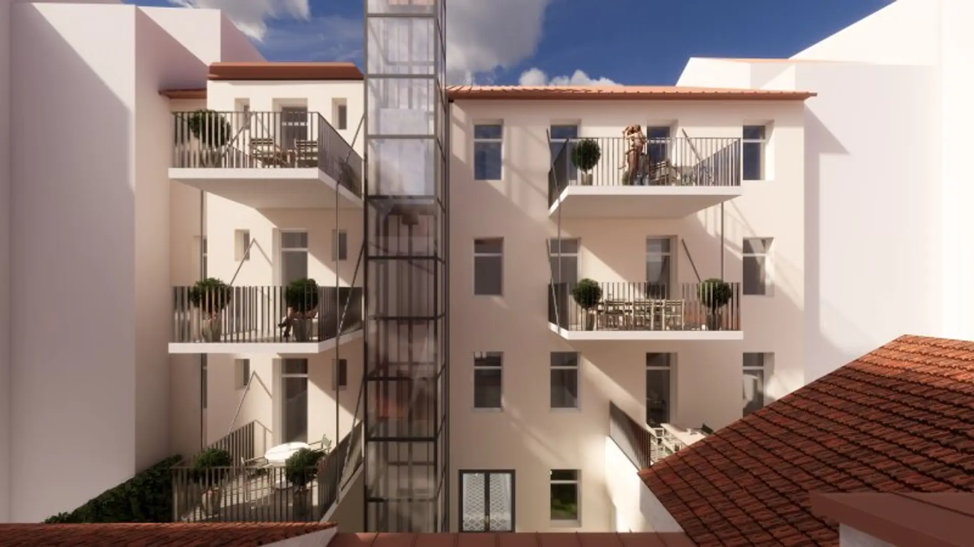 * Balkone straßen- und hofseitig