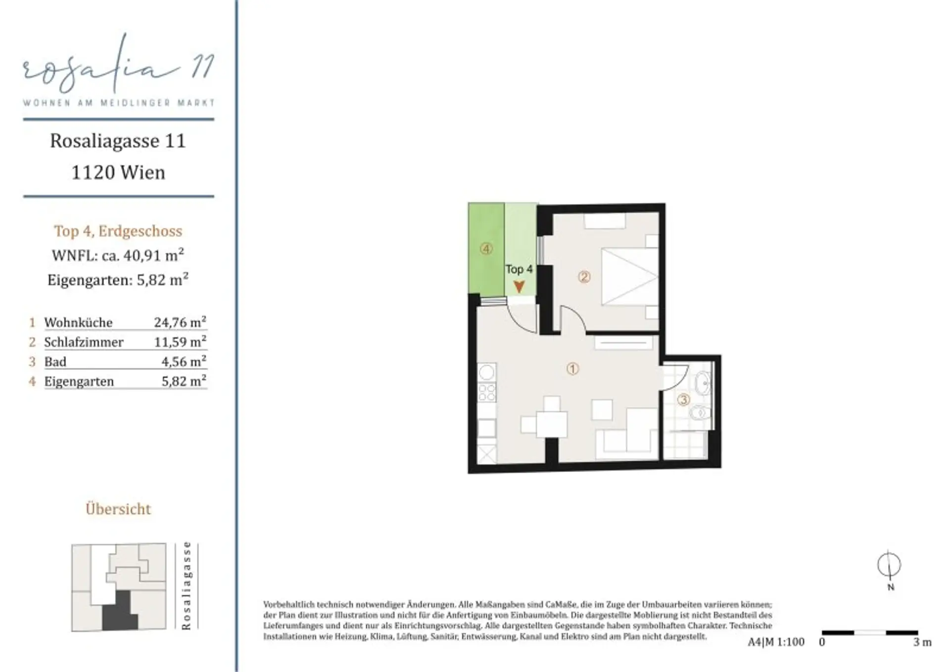 Top 4 – Attraktive Erdgeschoss-Einheit mit separatem Schlafzimmer und Eigengarten