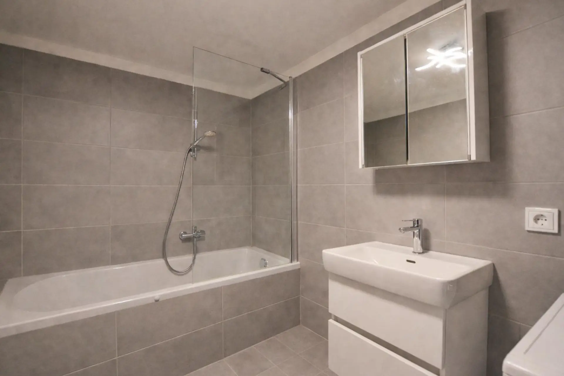 Das Badezimmer überzeugt mit einer Badewanne inklusive Duschwand und bietet Komfort und Funktionalität zugleich. Ein trockenes Kellerabteil steht ebenfalls zur Verfügung und sorgt für zusätzlichen Stauraum.