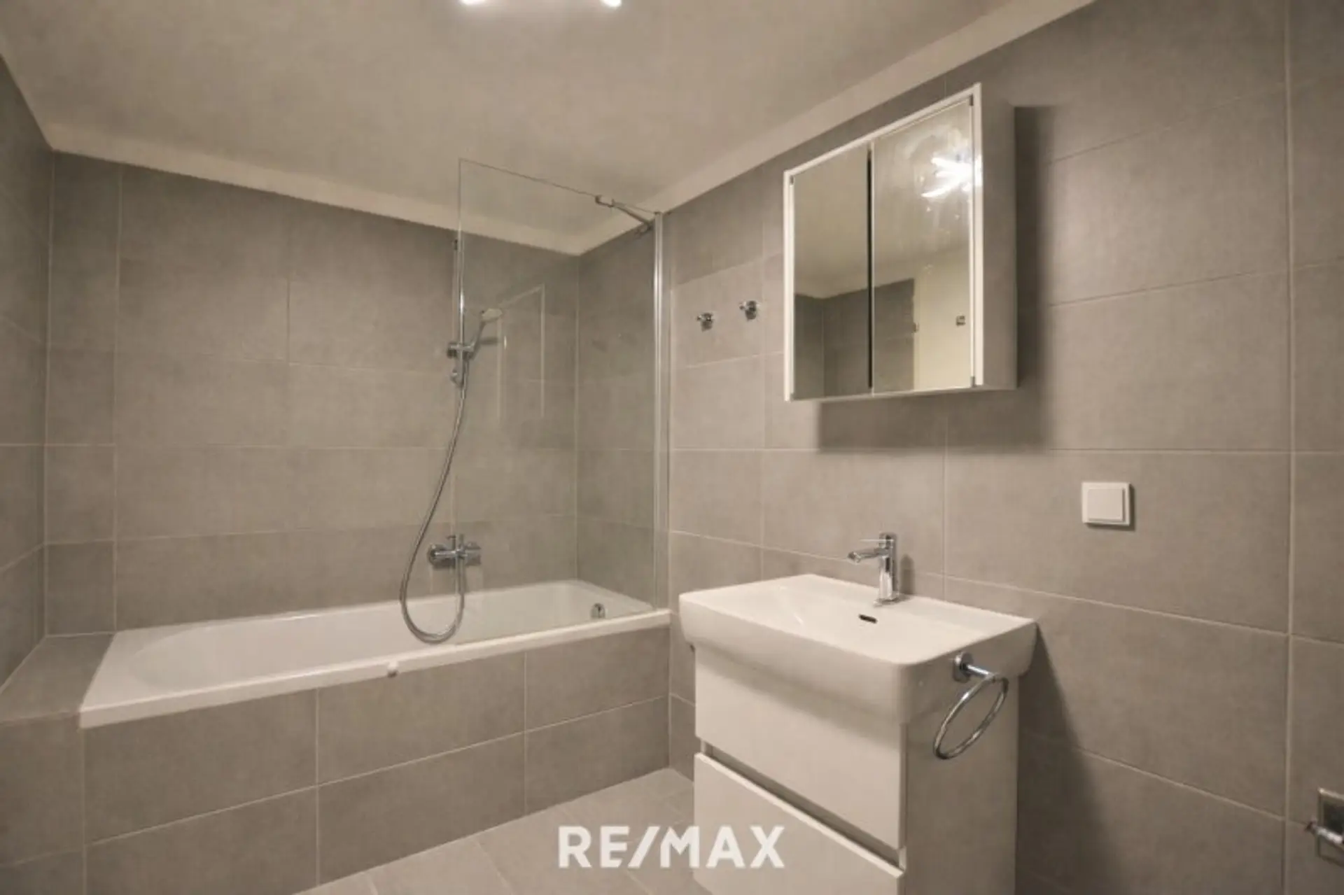Das Badezimmer überzeugt mit einer Badewanne inklusive Duschwand und bietet Komfort und Funktionalität zugleich. Ein trockenes Kellerabteil steht ebenfalls zur Verfügung und sorgt für zusätzlichen Stauraum.