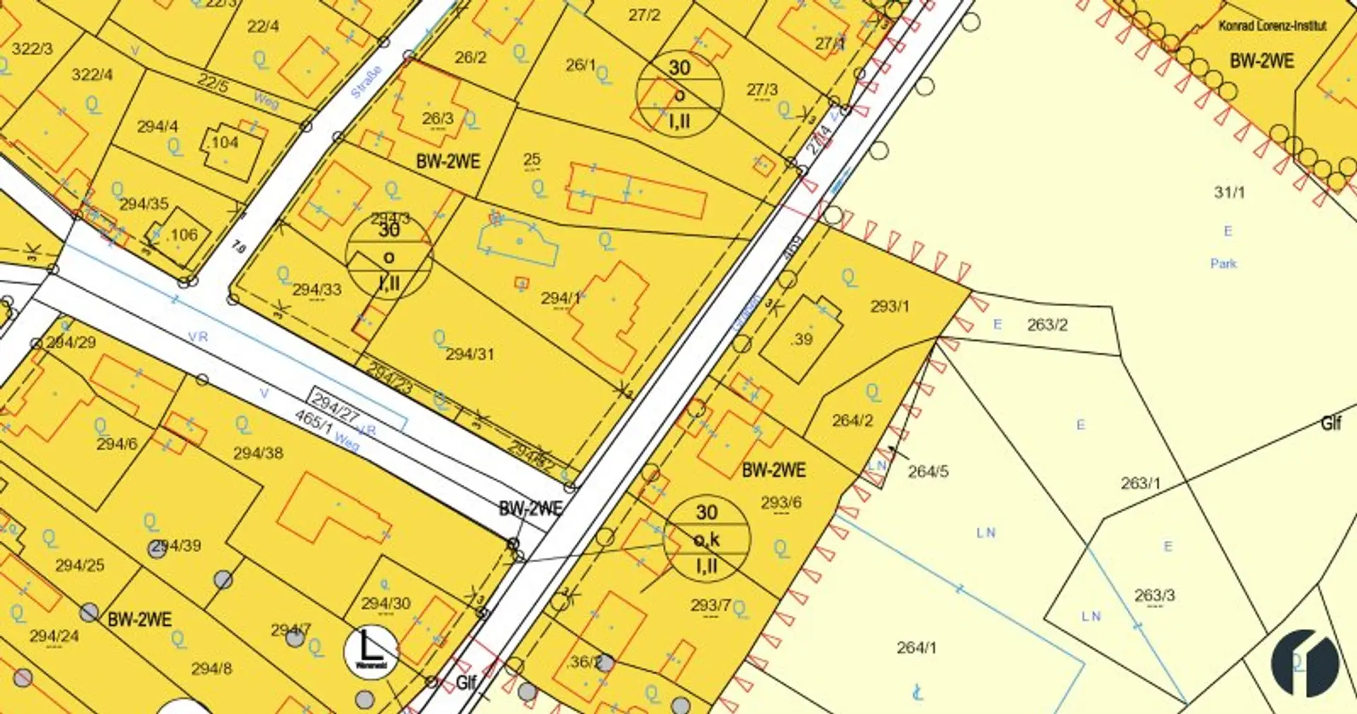 Das Grundstück wurde erst kürzlich geteilt, daher sehen Sie am Flächenwidmungsplan derzeit noch die alten Grundstücksnummern. Bitte entnehmen Sie die genaue Lage dem Teilungsplan. Die Aufschließungsabgabe für Bauklasse II wurde bereits entrichtet. Das Grundstück überzeugt mit sonniger Ost-Südost-Lage – perfekt für ein lichtdurchflutetes Zuhause.