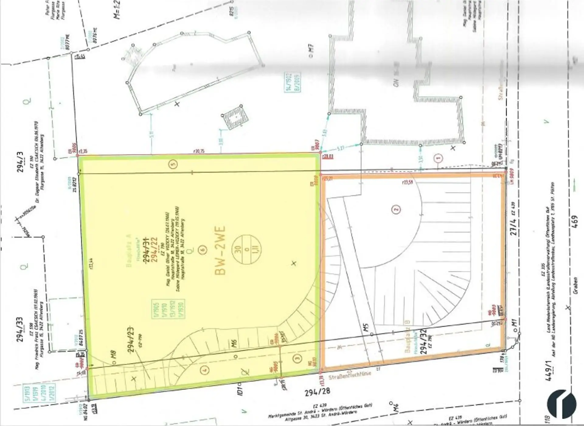 Das Grundstück wurde erst kürzlich geteilt, daher sehen Sie am Flächenwidmungsplan derzeit noch die alten Grundstücksnummern. Bitte entnehmen Sie die genaue Lage dem Teilungsplan. Die Aufschließungsabgabe für Bauklasse II wurde bereits entrichtet. Das Grundstück überzeugt mit sonniger Ost-Südost-Lage – perfekt für ein lichtdurchflutetes Zuhause.