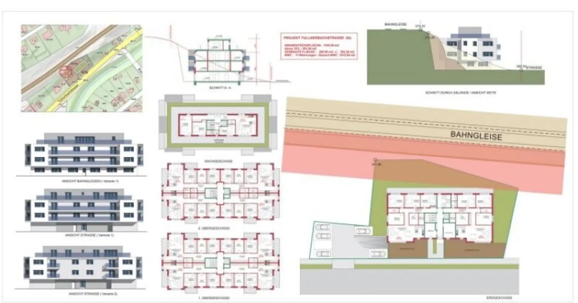 Bebauungsstudie: rund 1.032 m² Wohnnutzfläche plus ca. 218 m² Terrasse