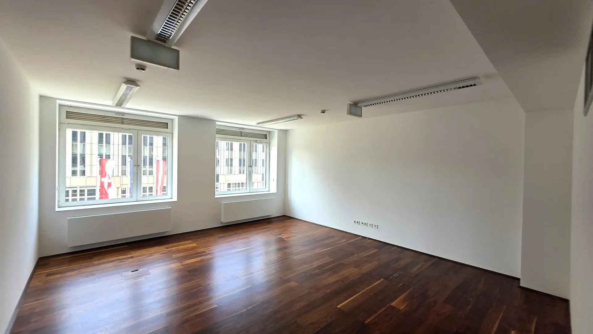ZUR VERMIETUNG gelangt diese moderne Bürofläche (96,25m²) im Parkringtower und Gartenbaugebäude, direkt beim Palais Coburg.