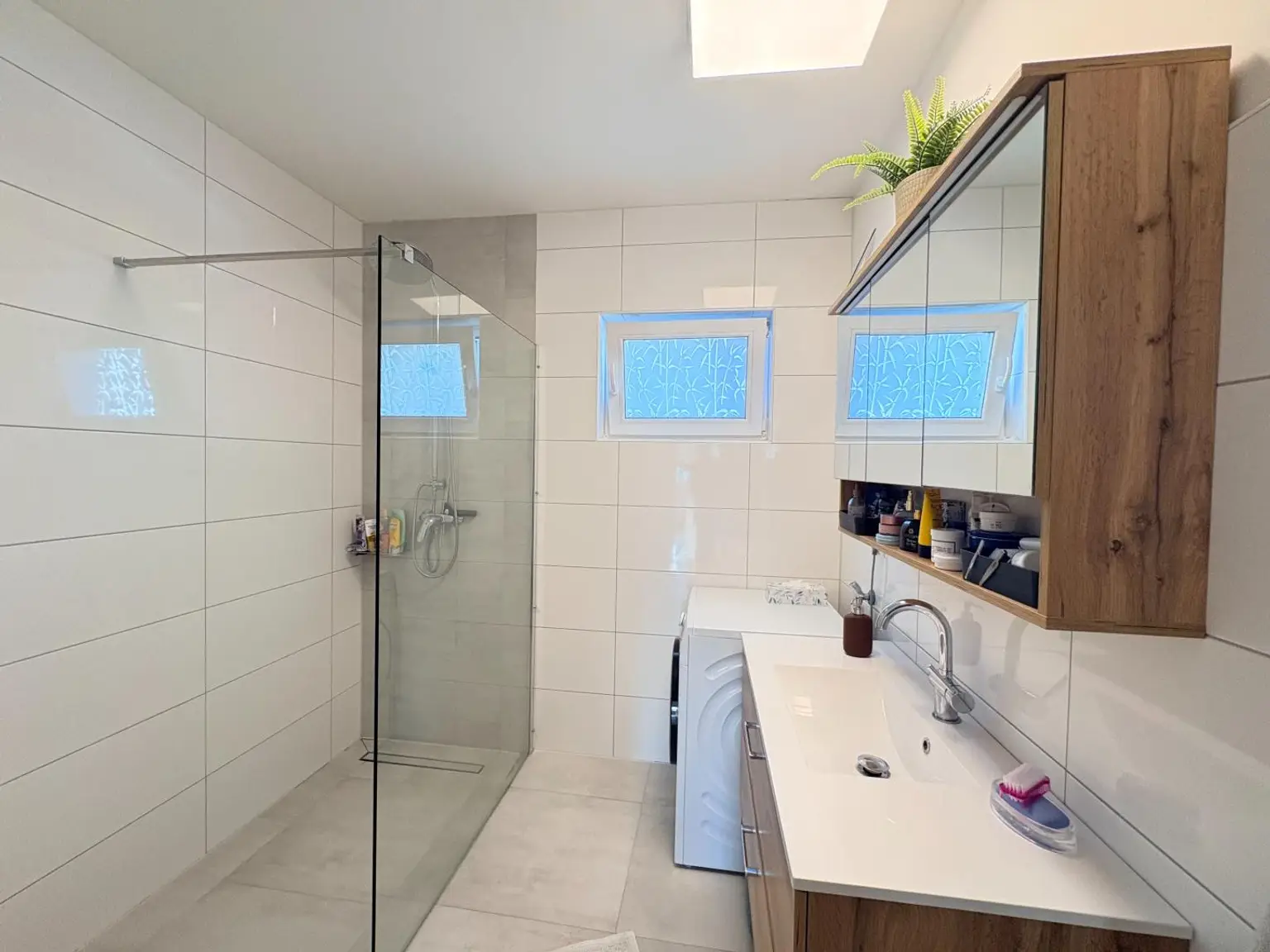 Auf einer Wohnfläche von ca. 156 m² lässt es sich perfekt wohnen, großzügige Außenflächen, der Gartenbereich sowie viele weitere Assets machen diese Liegenschaft besonders interessant. Das moderne Badezimmer mit Dusche, zeitgemäßen Armaturen und komfortabler Ausstattung sorgen für ein angenehmes Wohngefühl. Durch die effiziente Raumaufteilung und der Großzügigkeit der Liegenschaft ist diese für Eigennutzer sowie größere Familien geeignet.