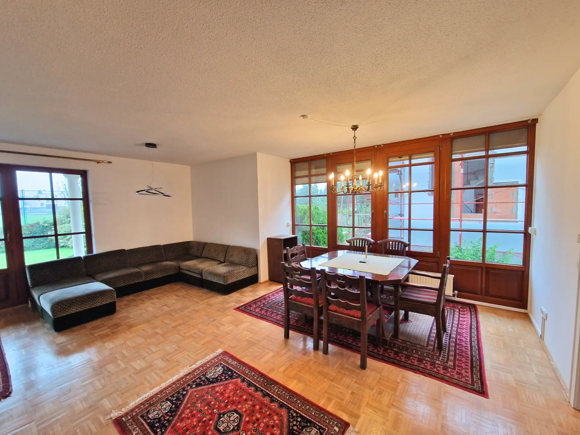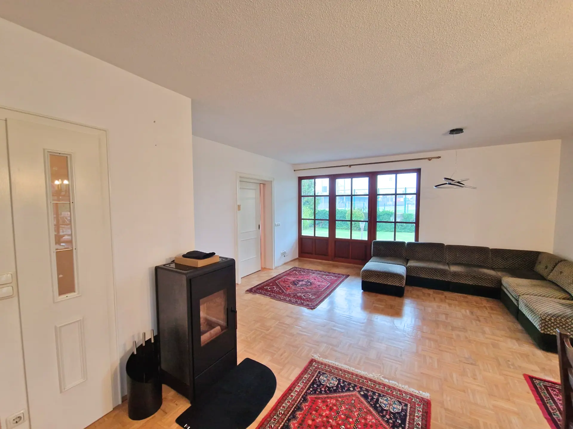 Der großzügige Wohnbereich im Erdgeschoss schafft mit seinen hellen Räumen und dem direkten Zugang zur großen Terrasse eine angenehme Wohnatmosphäre. Der weitläufige Garten ist perfekt für Kinder, Hobbygärtner oder entspannte Stunden im Grünen. Im Obergeschoss sorgen Balkon und Ausblick für zusätzlichen Freiraum.