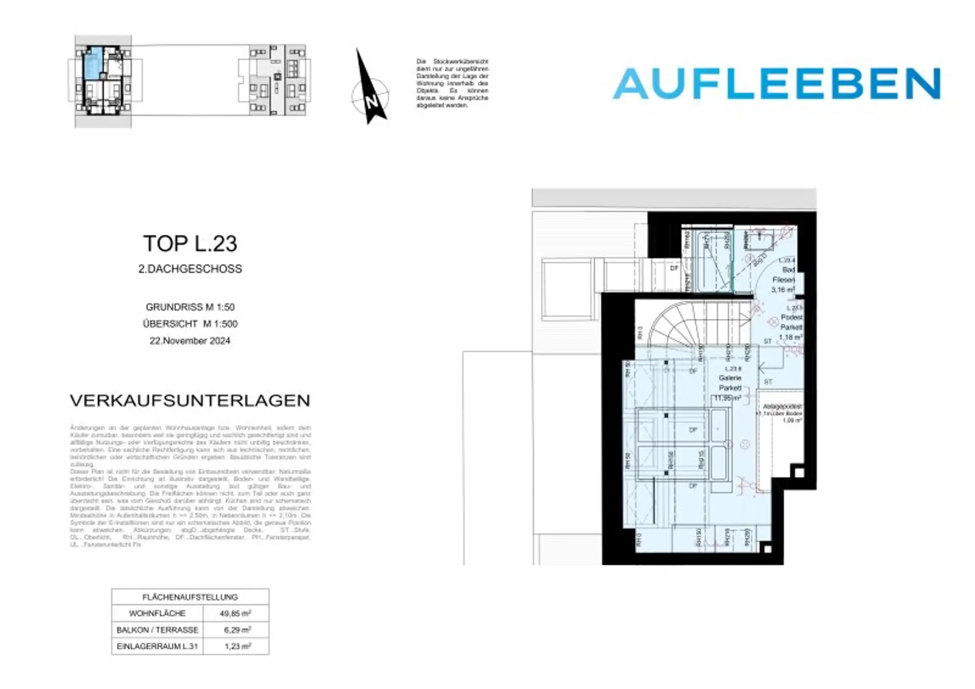 Diese 2-ZIMMER-WOHNUNG mit ca. 49,99 M² WOHNFLÄCHE + einem BALKON mit CA. 6,29 M² liegt im 1. UND 2. DACHGESCHOSS und gliedert sich in folgende Raumaufteilung: