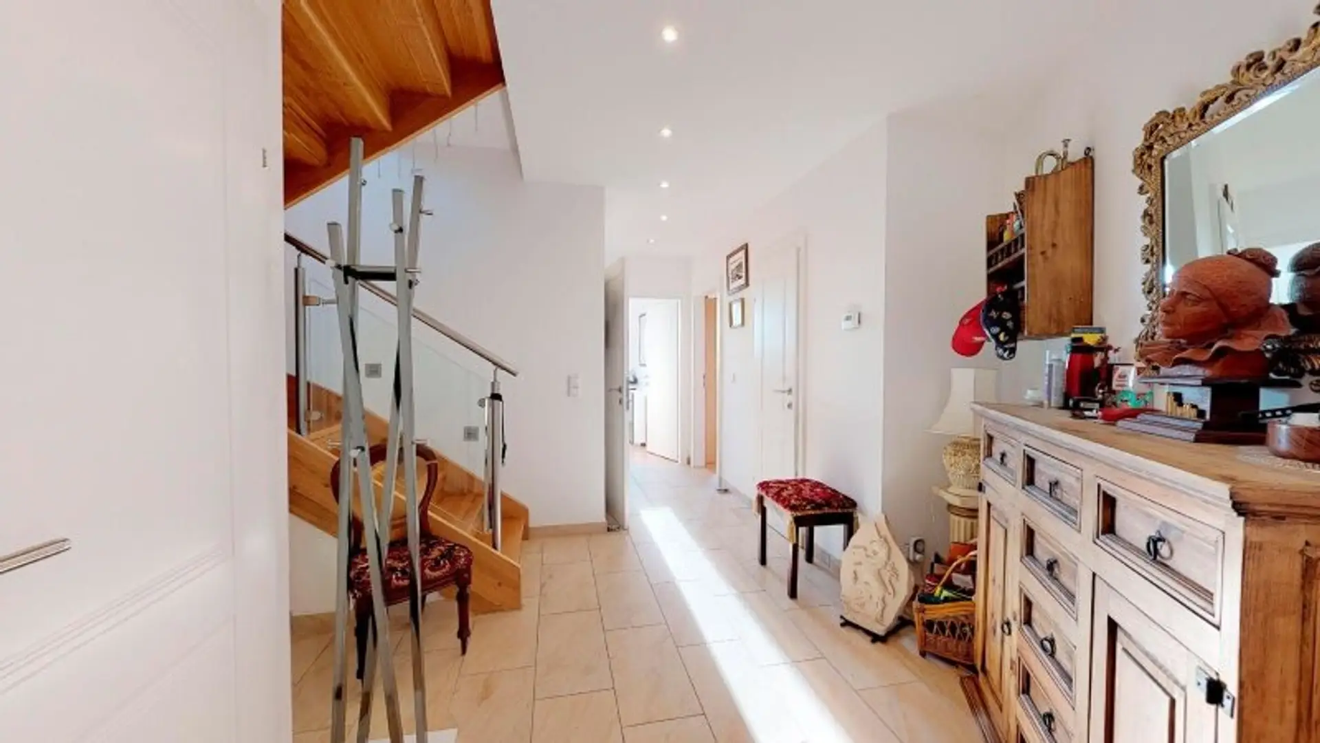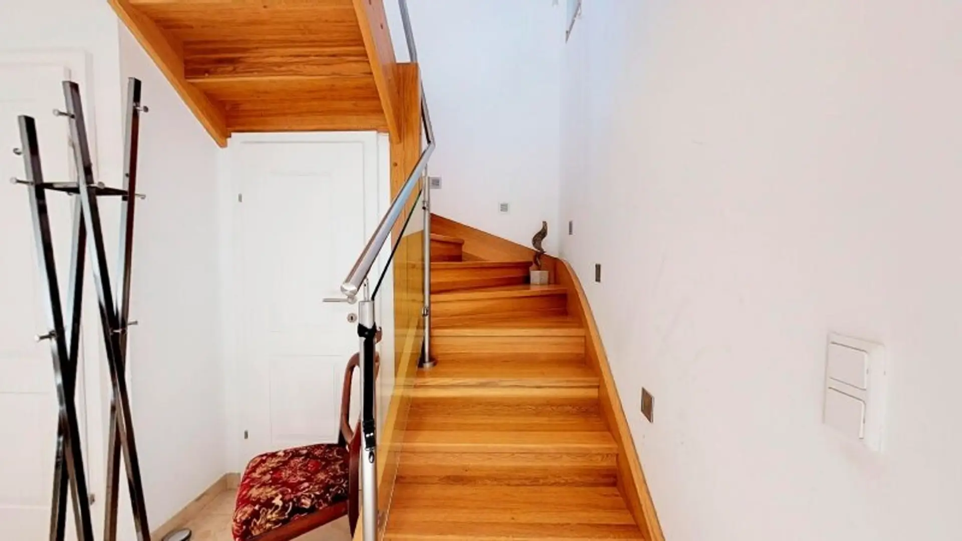 Fußbodenheizung, Massivholztüren, Parkettboden Eiche, in den Sanitärräumen zeitgemäße Fliesen.