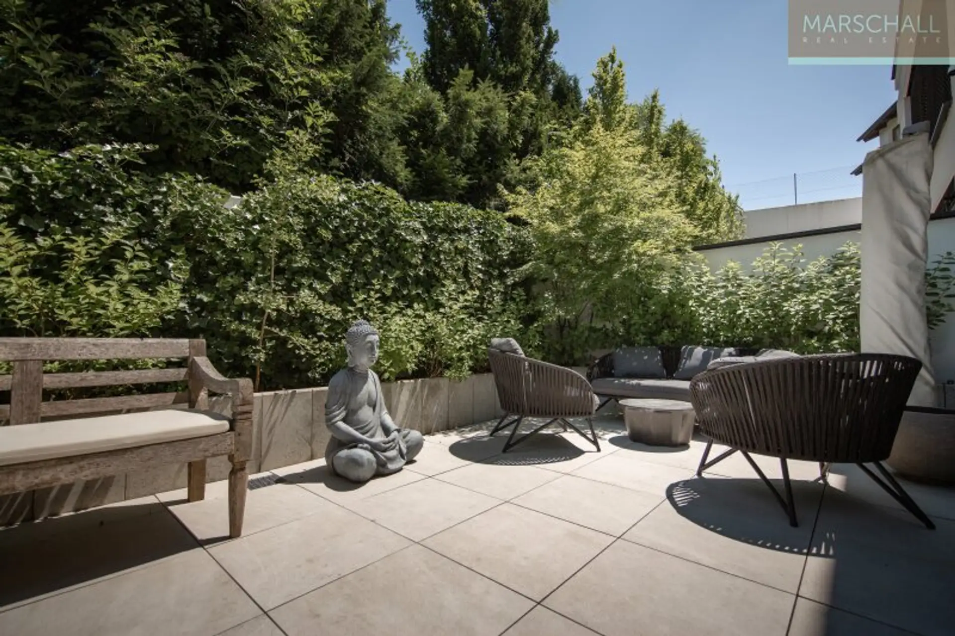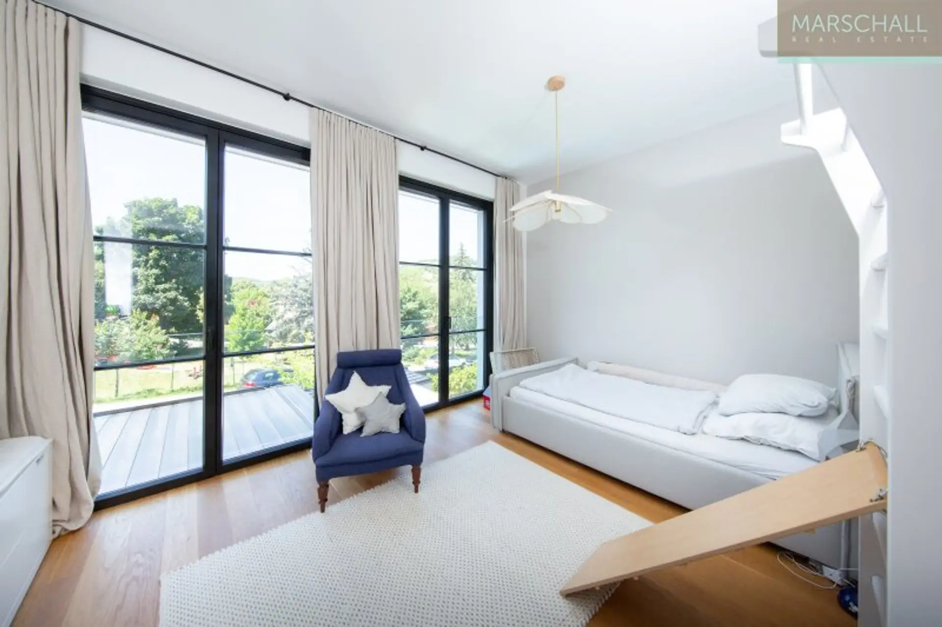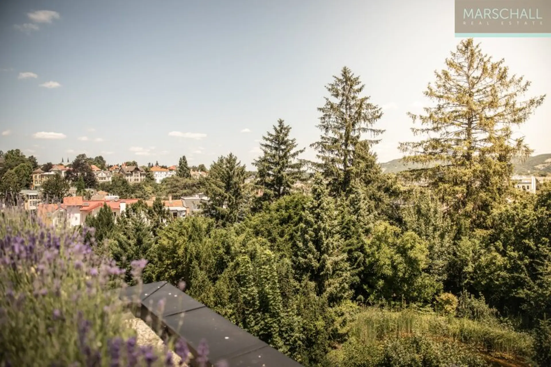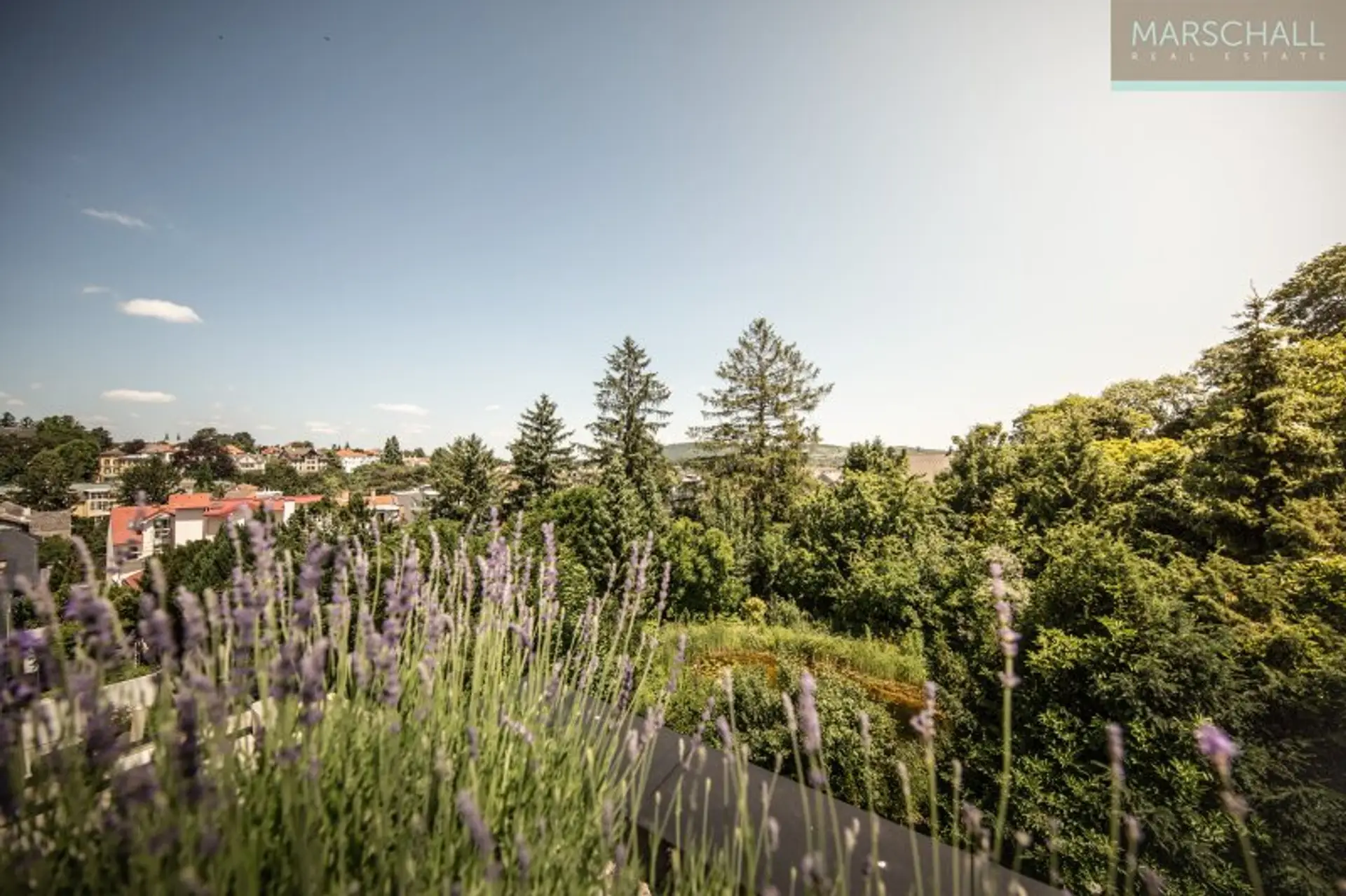 Im DG gelangt man durch ein Galerie-Zimmer mit Teeküche, Daybed und Homeoffice auf die ca. 42 m2 große Dachterrasse mit herrlichem Blick auf die umliegende Landschaft.