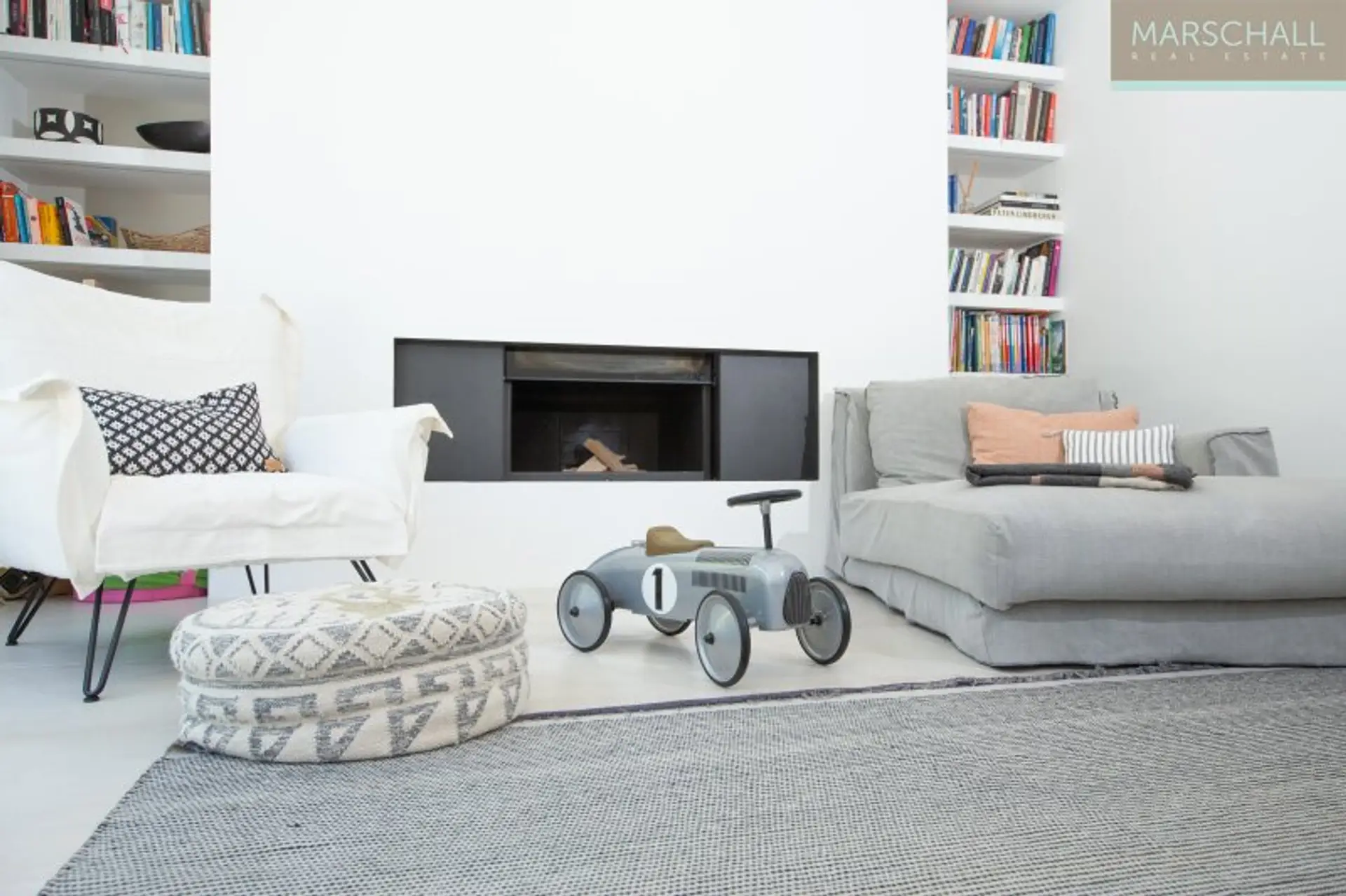 * Offener Kamin im Wohnzimmer