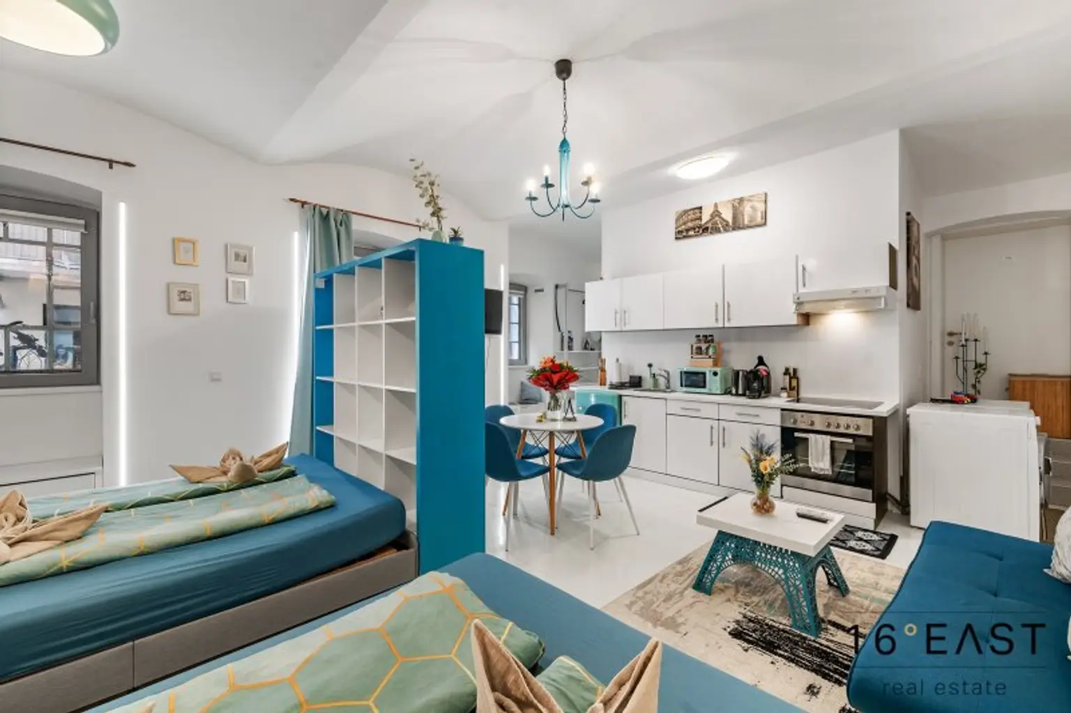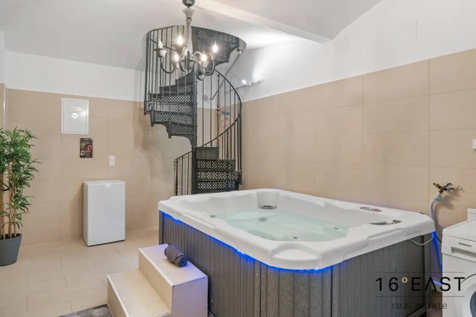 Die beiden Ebenen sind über eine liebevoll renovierte historische Stiege miteinander verbunden.