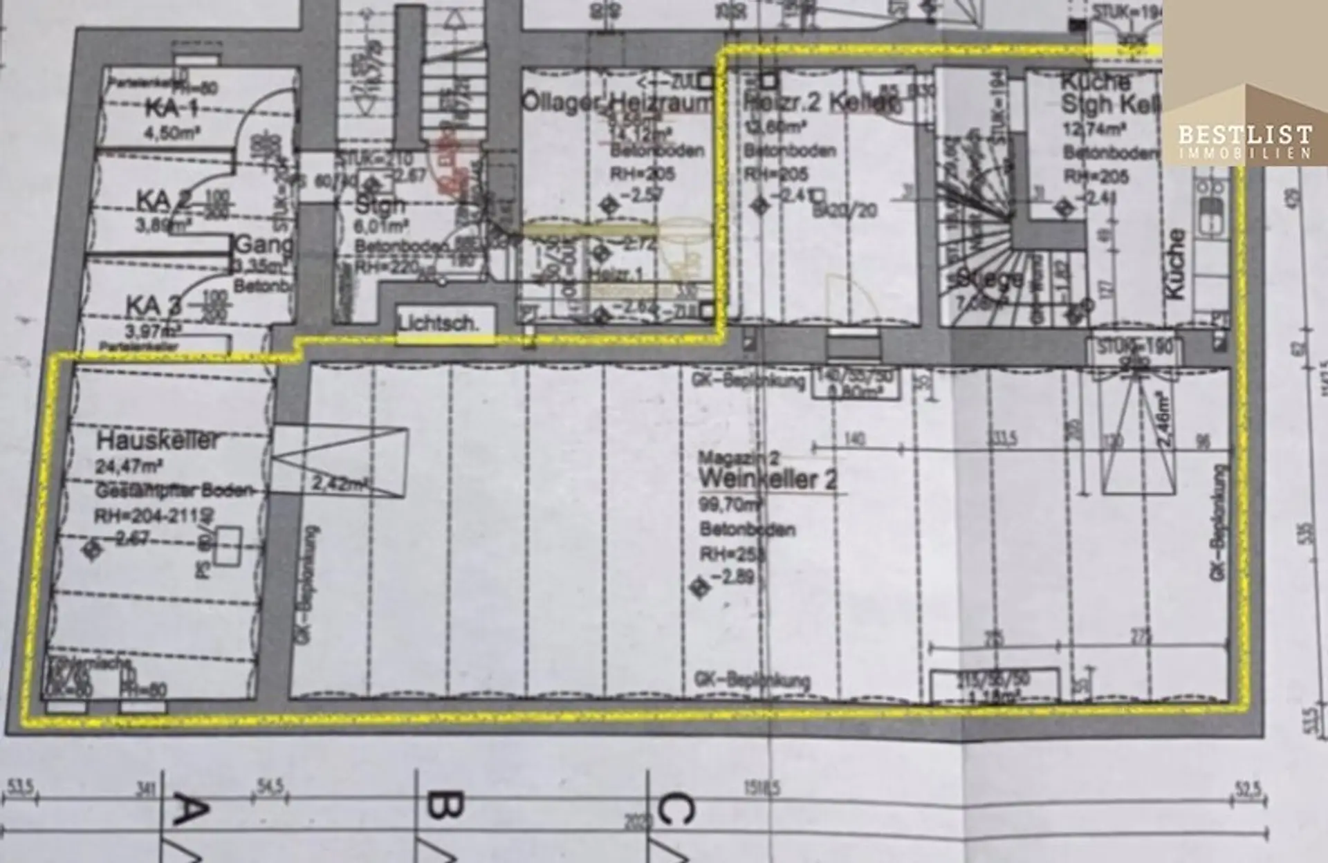 Über eine Treppe kann man(derzeit Wand eingezogen und über Innenhof erreichbar) in den unteren Bereich gelangen, der dem Geschäft zugeordnet ist. Dieser eignet sich hervorragend für Veranstaltungen oder Verkostungen. Ergänzt wird dieser Bereich durch ein Lager sowie eine separate Küche.