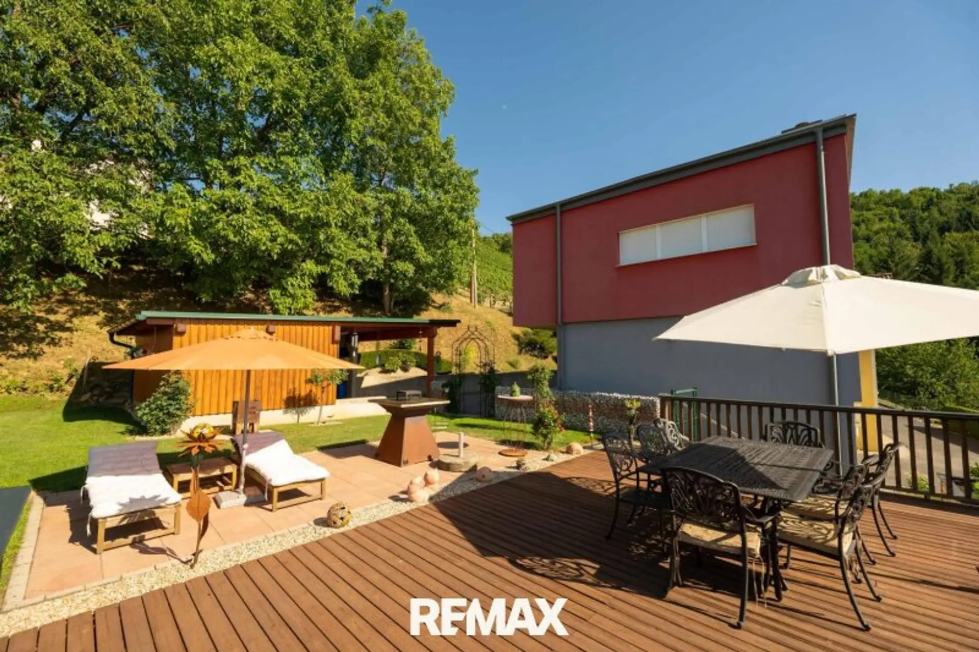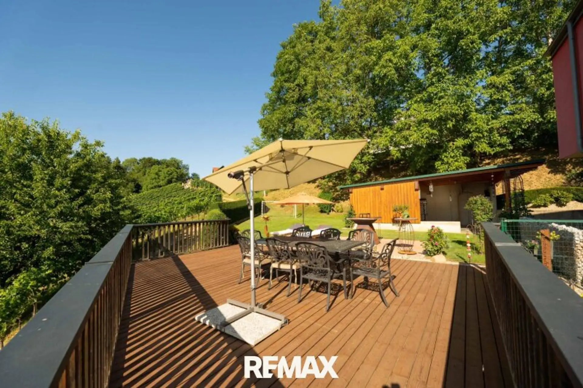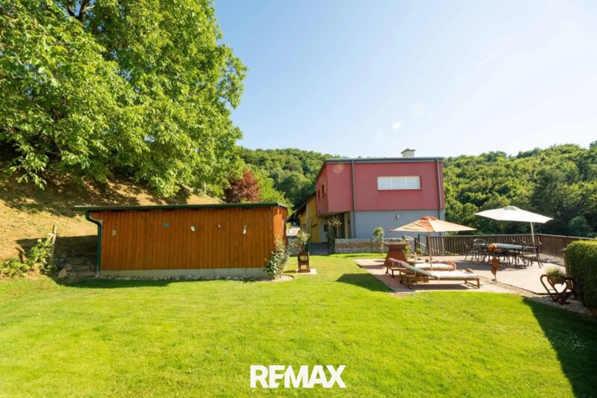 Der Außenbereich dieser Liegenschaft ist ein wahres Paradies. Rund um das Haus wurde ein gepflegter Garten mit viel Liebe zum Detail angelegt.