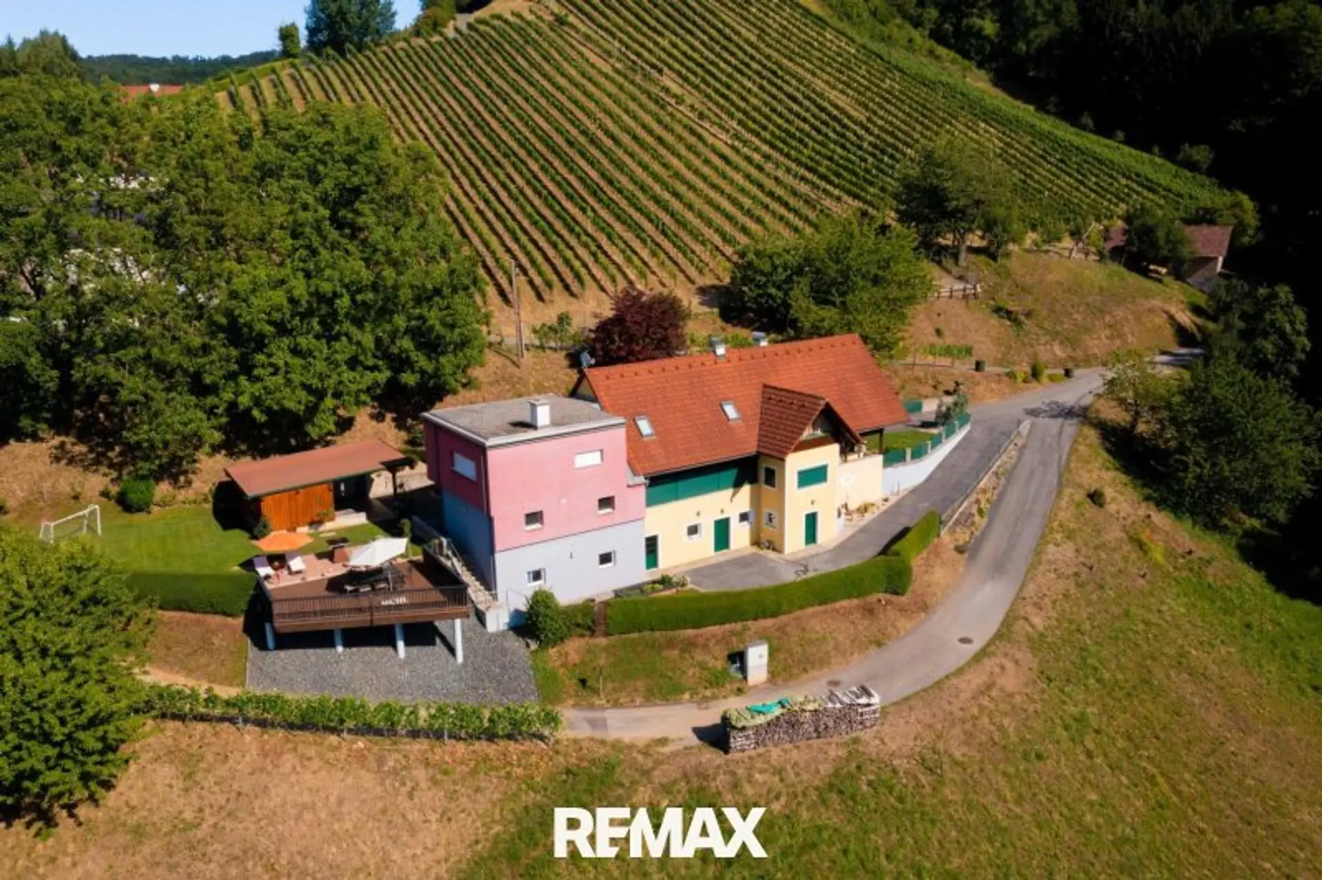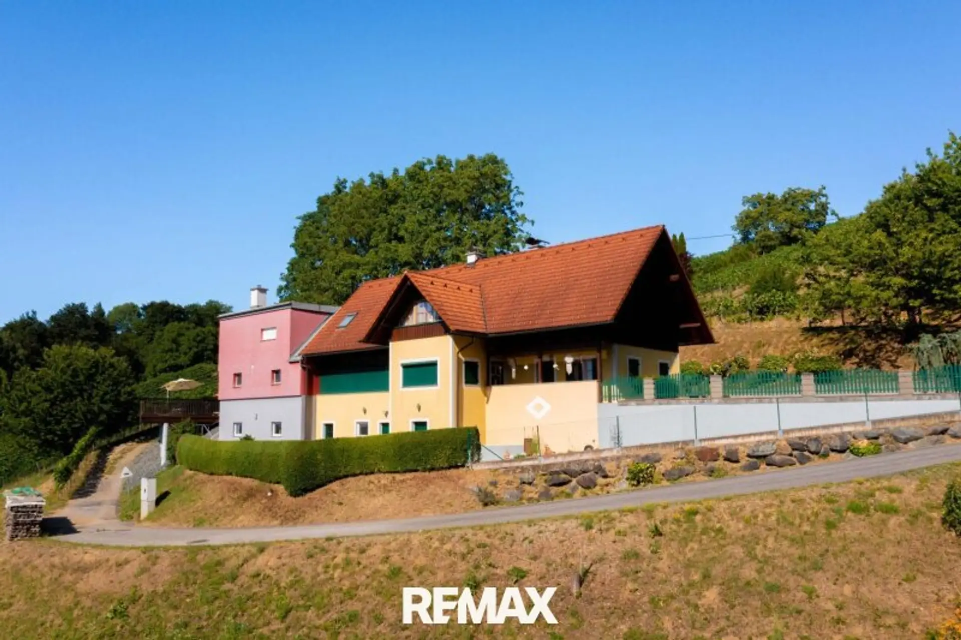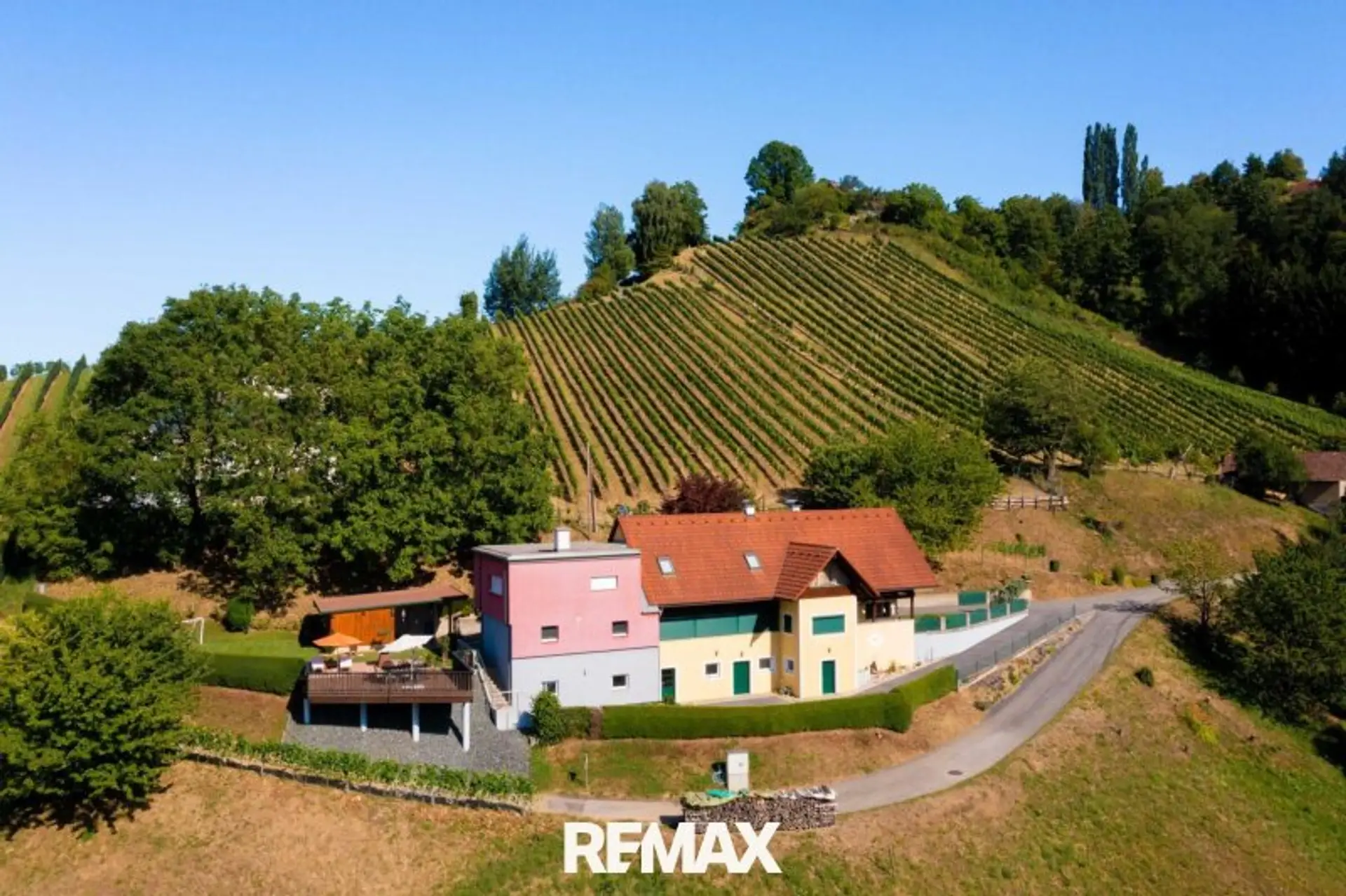 Zur Liegenschaft gehören rund 5 ha Grund, darunter ein professionell bewirtschafteter Weingarten mit einer erlesenen Rebsorte, landwirtschaftliche Flächen sowie Wald – ideal für Natur- und Weinliebhaber.