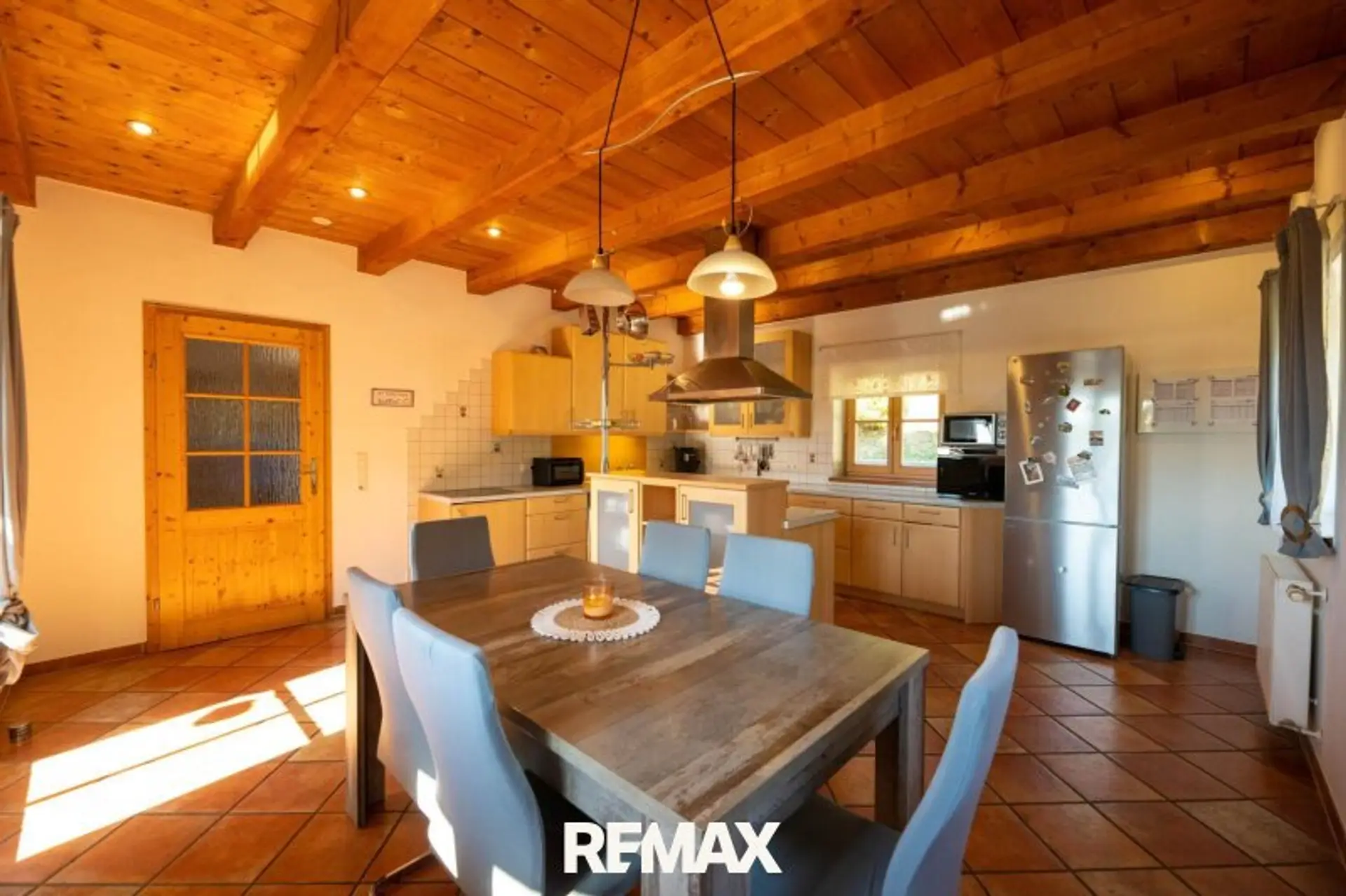 Zusätzliche, voll ausgestattete Küche mit gemütlicher Essgruppe – perfekt für Gäste oder Mehrgenerationenwohnen