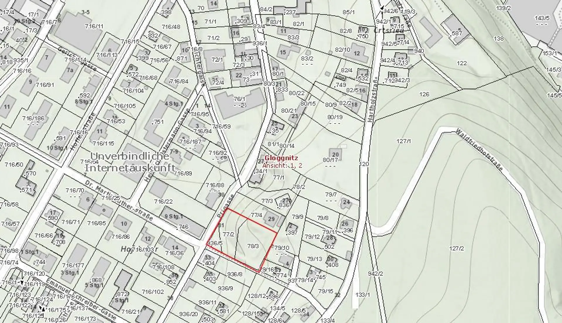 Dieses Baugrundstück in erhöhter Lage im Zentrum von Gloggnitz bietet Ihnen ideale Voraussetzungen zur Verwirklichung Ihres Wohntraums. Auf rund 2.496 m² gestalten Sie Haus und Garten!