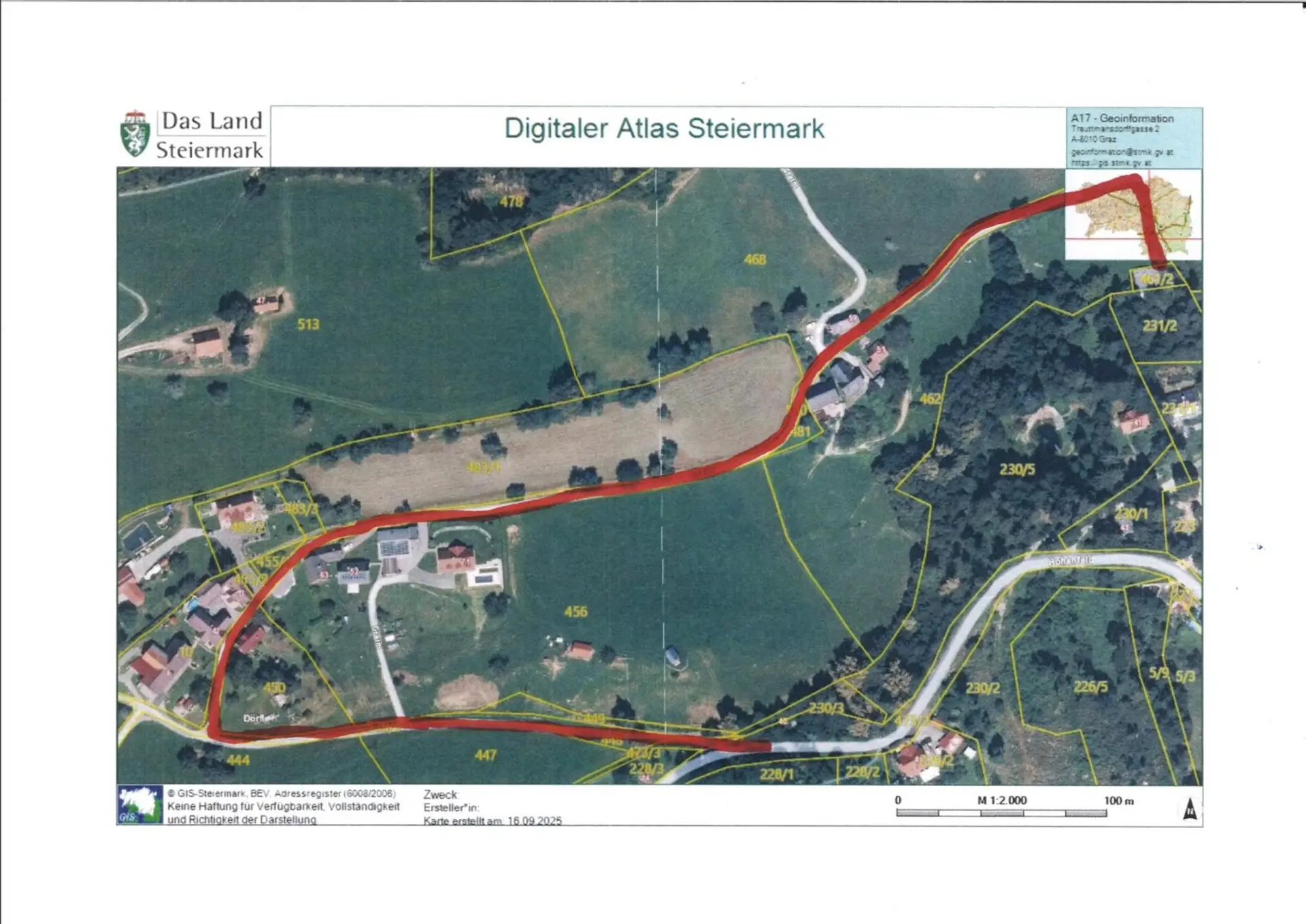 Die Liegenschaft ist mit Ortswasser und Strom versorgt und über eine naturbelassene Zufahrt erreichbar – zunächst über einen Gemeindeweg, anschließend über einen Servitutsweg. Die Zufahrt ist nur beim ersten mal abenteuerlich.