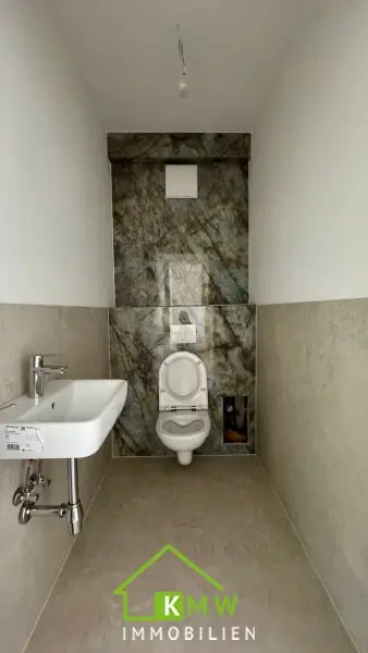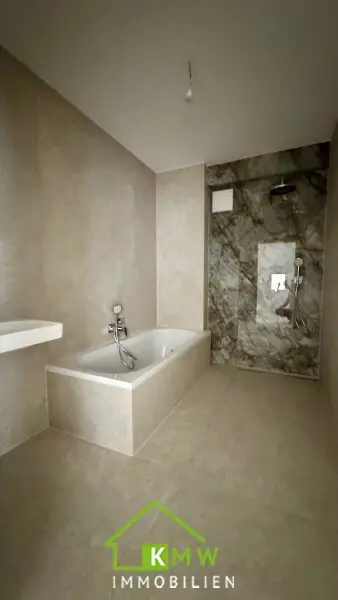 Das Wohnambiente ist modern und luxuriös, es gibt Fliesen, Parkett, Raffstore, Fußbodenheizung, Smart Home und vieles mehr !