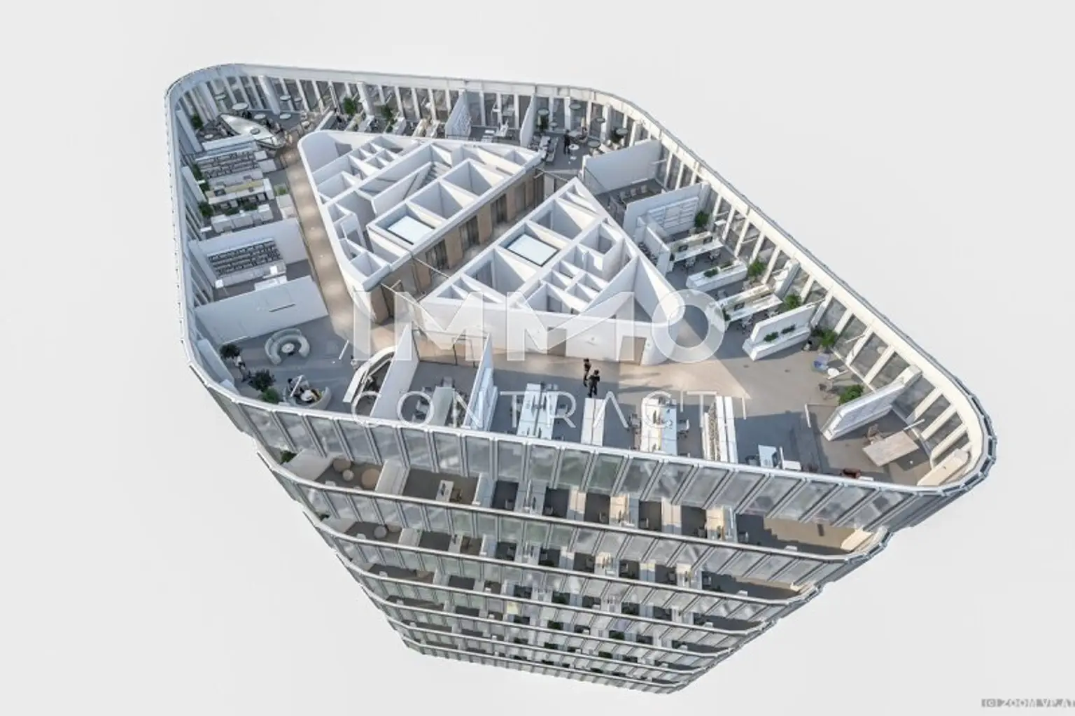 Mit ca. 135 m Höhe und 38 Geschossen ist er das höchste Gebäude des Areals. Auf einer oberirdischen Bruttogeschossfläche von rund 43.400 m² befinden sich rund 28.000 m² an Büroflächen. Zusätzlich umfasst der Büroturm auch ein Konferenzzentrum sowie ein Betriebsrestaurant und ein Café.