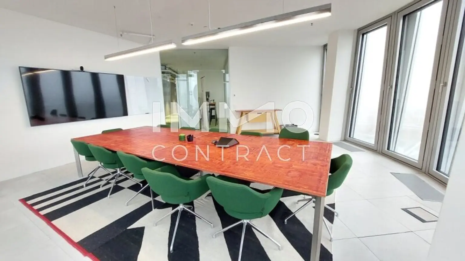Die angebotenen Flächen umfassen zwei individuell abtrennbare Büroetagen im prestigeträchtigen AUSTRO TOWER. Hier können bis zu 130 Arbeitsplätze untergebracht werden. Dank der flexiblen Grundrisse können Sie Ihre Arbeitsstätte ganz nach Ihren Wünschen und Bedürfnissen gestalten - von Open-Space-Büros über Gruppen- bis hin zu Einzelbüros ist hier alles möglich. Aufgrund einer Tiefe von ca. 7,30 m (Hochhauskern bis Fassade) wird auch eine Anordnung von Büroräumen mit mehrreihigen Arbeitsplatzbelegungen ermöglicht. Ebenso ist bereits eine hochwertig ausgestattete Küche möbliert verfügbar!