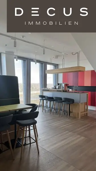 Ein besonderes Augenmerk wurde auf Servicequalität und Aufenthaltskomfort gelegt. Im Erdgeschoss befindet sich eine attraktive gastronomische Nutzung mit Café und Außenbereich vorgesehen, die sowohl Mitarbeitern als auch Besuchern als kommunikativer Treffpunkt dient. Ergänzend steht im ersten Obergeschoss ein hochwertiges Betriebsrestaurant zur Verfügung. Ein professioneller Empfangs- und Portierservice gewährleistet rund um die Uhr Betreuung und Sicherheit im Gebäude.