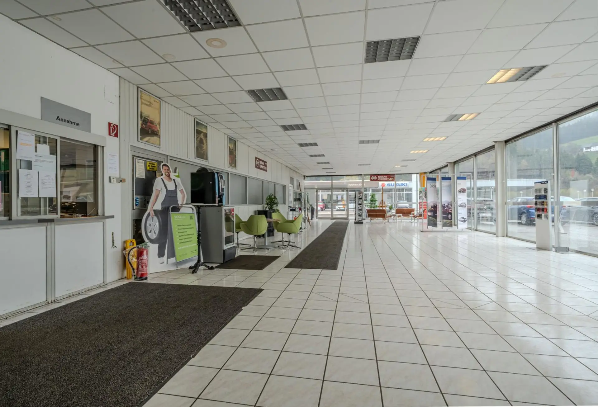 Dieses Autohaus mit einer Nutzfläche von rund 800m² und einer Grundfläche von ca. 5300m² befindet sich in zentraler, gut sichtbarer Lage von Langenwang und besticht mit der großen Ausstellungsfläche und der zum Großteil ausgestatteten Werkstätte.