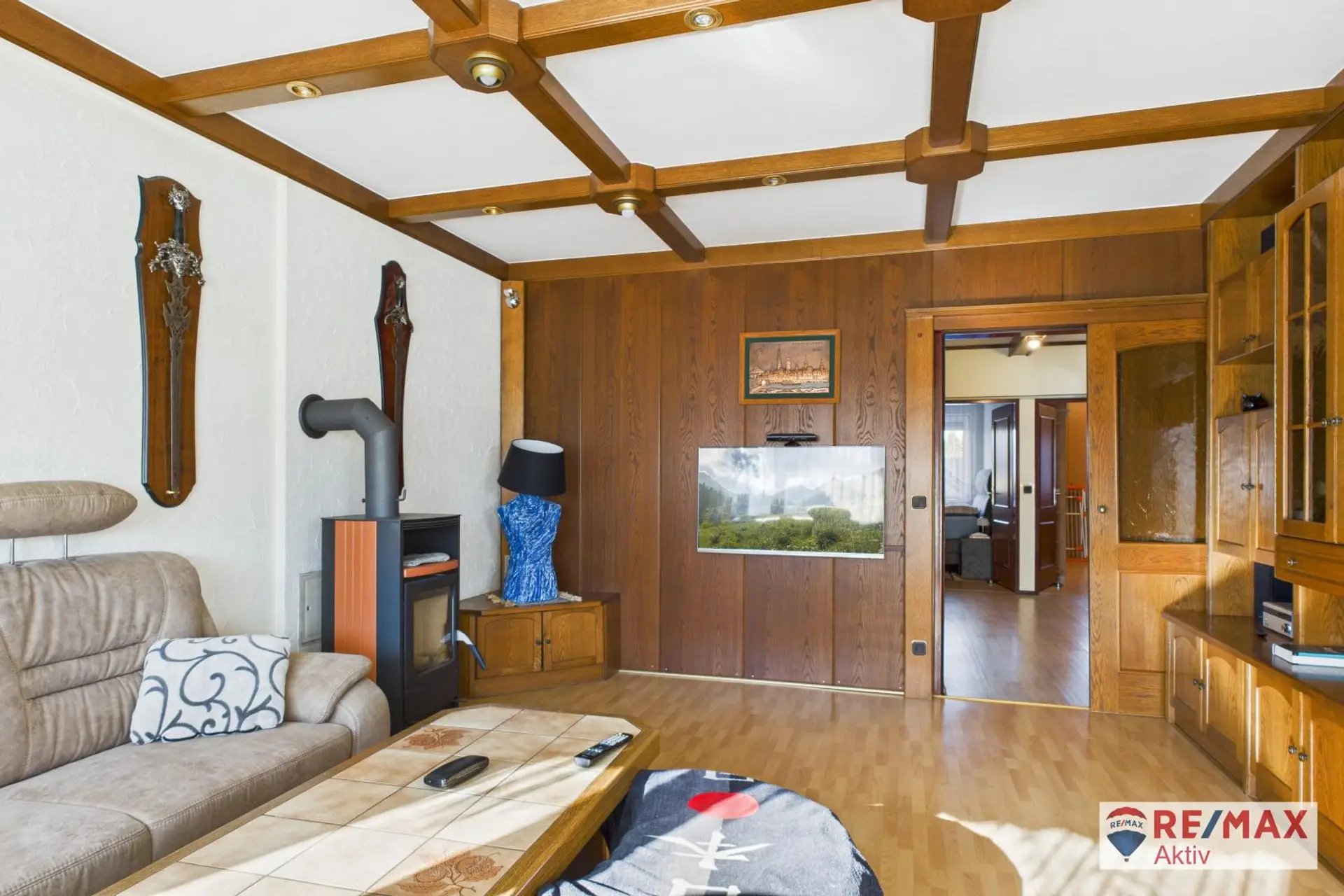 Das helle und freundliche Wohnzimmer bietet ausreichend Platz für einen gemütlichen Wohnbereich und verfügt über den direkten Zugang zur Loggia. Ein besonderes Highlight ist der Schwedenofen, der nicht nur für gemütliche Wohlfühlatmosphäre sorgt, sondern in der kühleren Jahreszeit eine zusätzliche, angenehme Wärmequelle bietet.