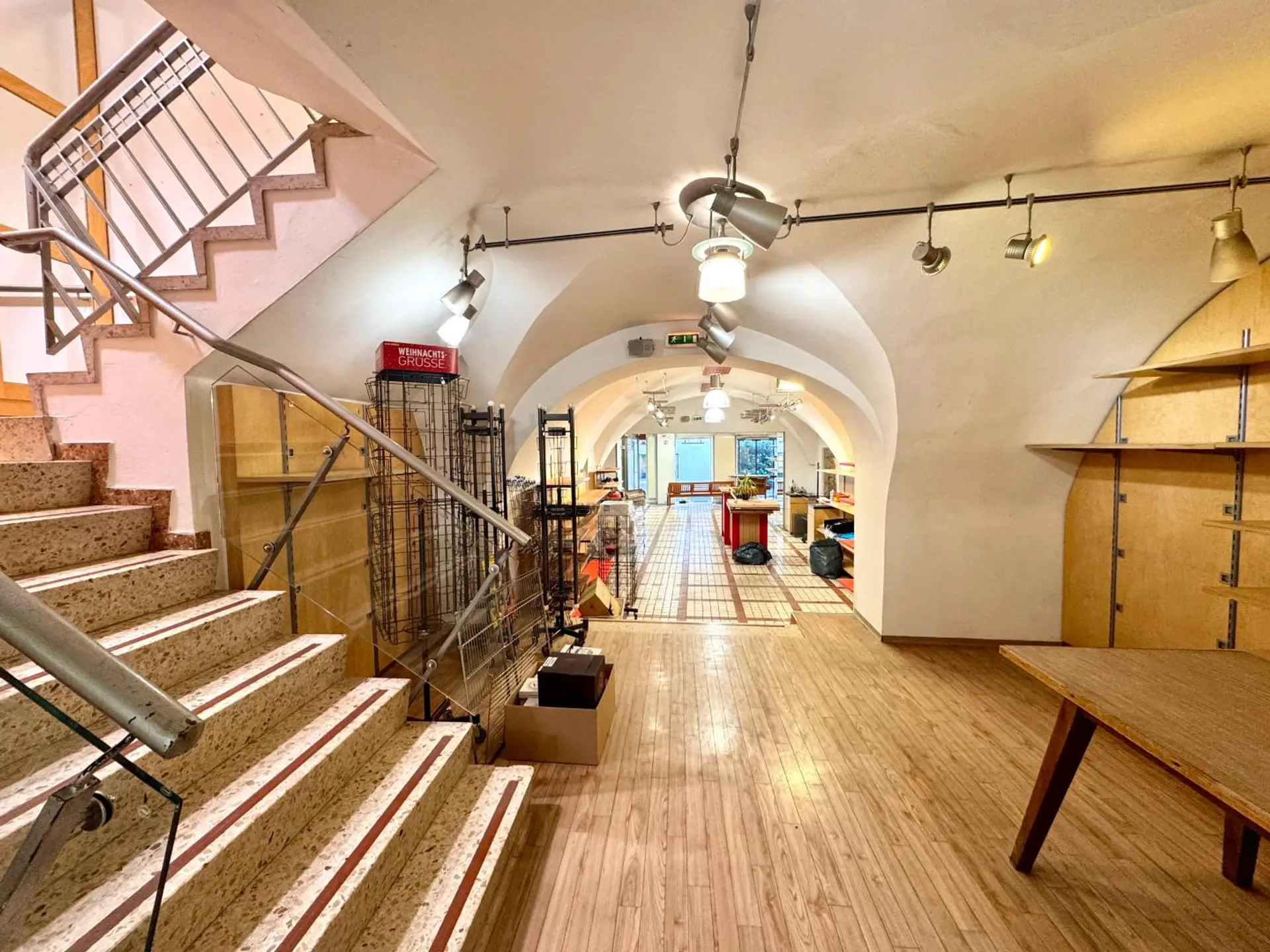 Die beiden Verkaufsebenen – zusammen etwa 366 m² – sind über eine interne Treppe miteinander verbunden. Der Haupteingang liegt direkt an der Fußgängerzone und überzeugt durch eine hervorragende Sichtbarkeit.