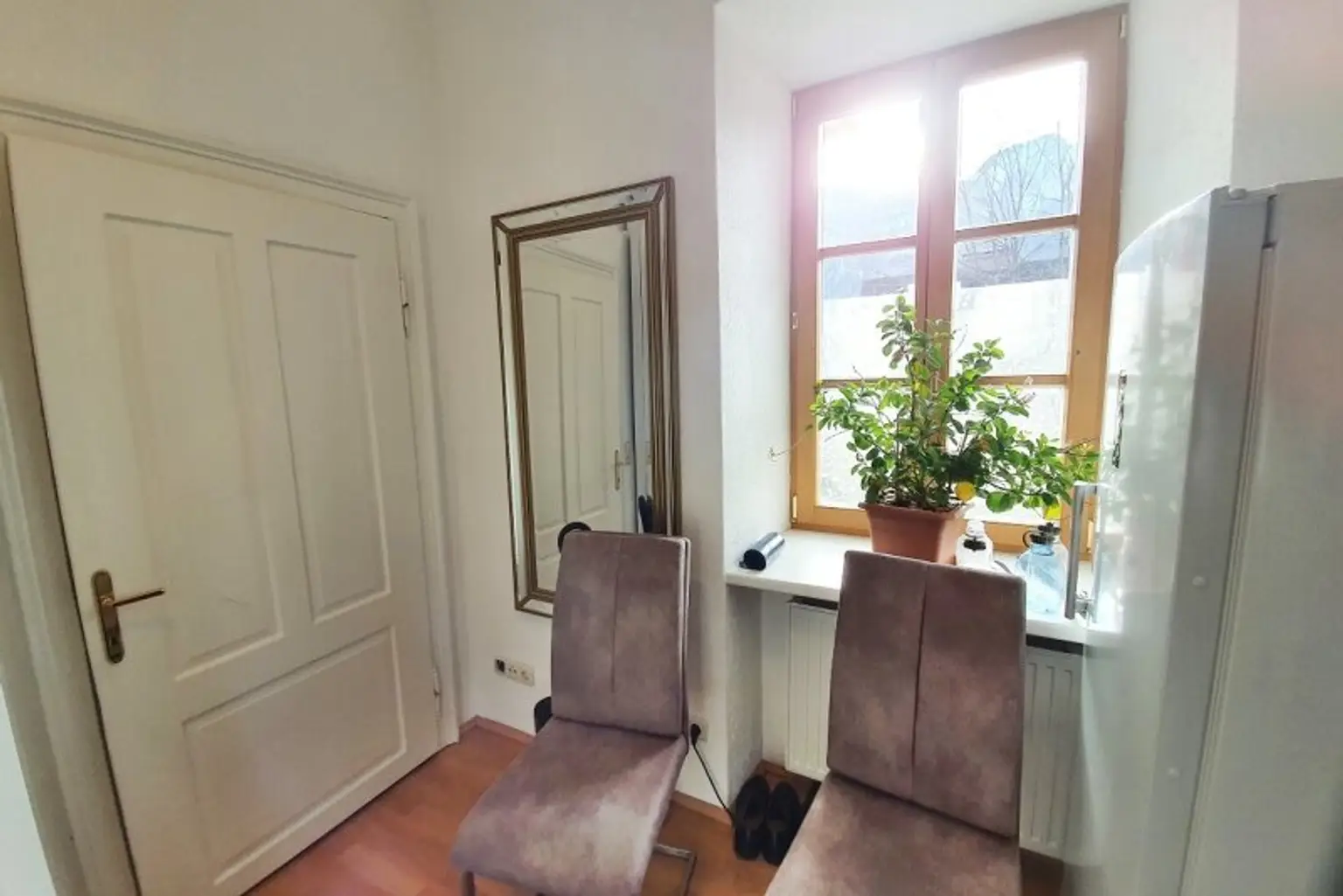 Im Erdgeschoß einer durchgehend renovierten Villa nutzen Sie Wohnzimmer, Schlafzimmer, großes Badezimmer, Küche, Speise-Erker sowie Wirtschaftsraum, Garderobe und zusätzliches WC.