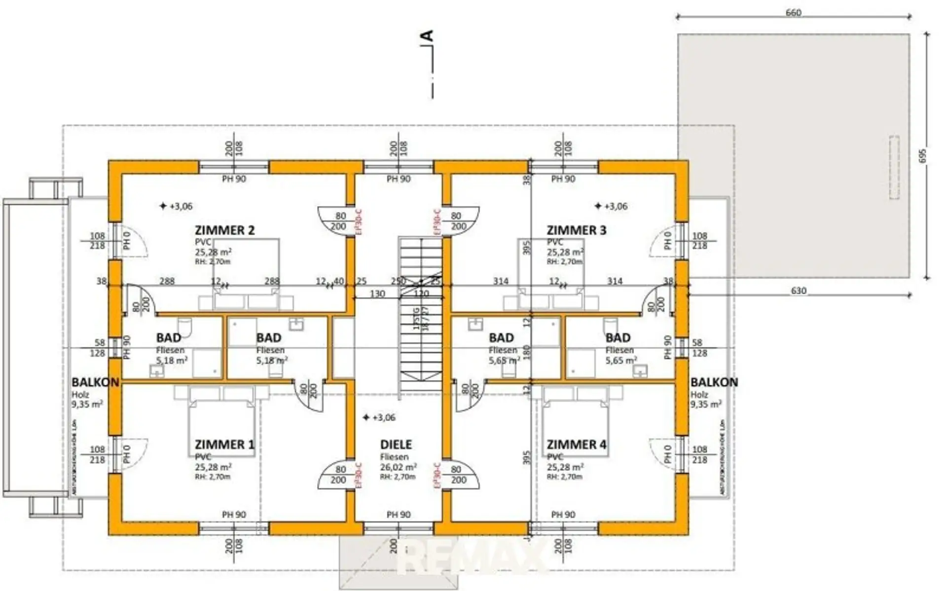 Obergeschoß: 4 modern gestaltetet Doppelzimmer jeweil mit Bad und WC, 2 Balkone