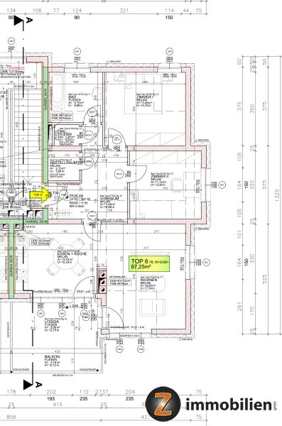 Die Wohnung ist unterteilt in: 1 Küche, 1 Wohnzimmer, 2 Schlafzimmer, 1 Vorraum, 1 Badezimmer mit Fenster und Badewanne, 1 WC, 1 Abstellraum sowie eine 9 m² große Loggia.