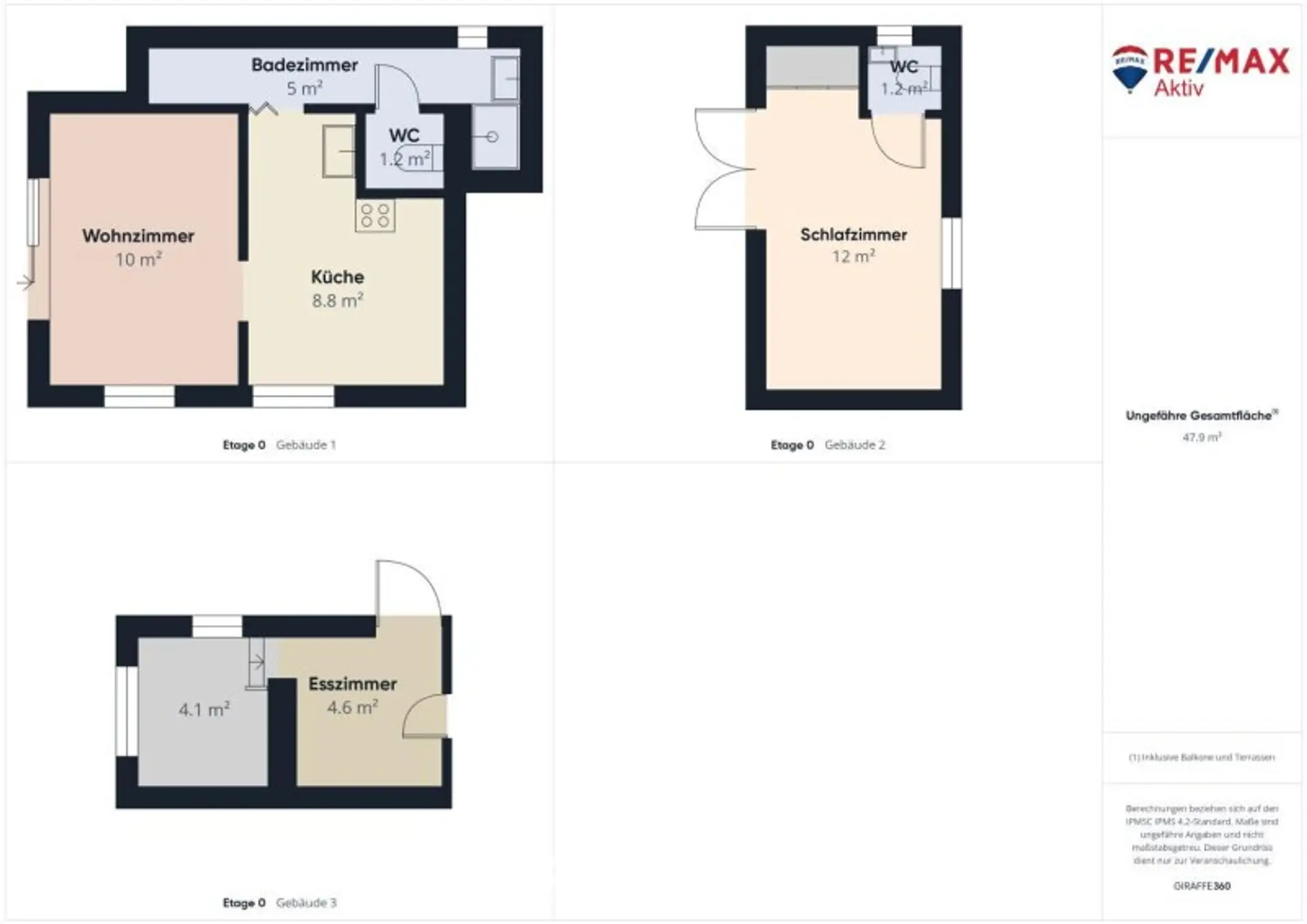 Die Liegenschaft besteht aus 3 separaten Bauteilen: