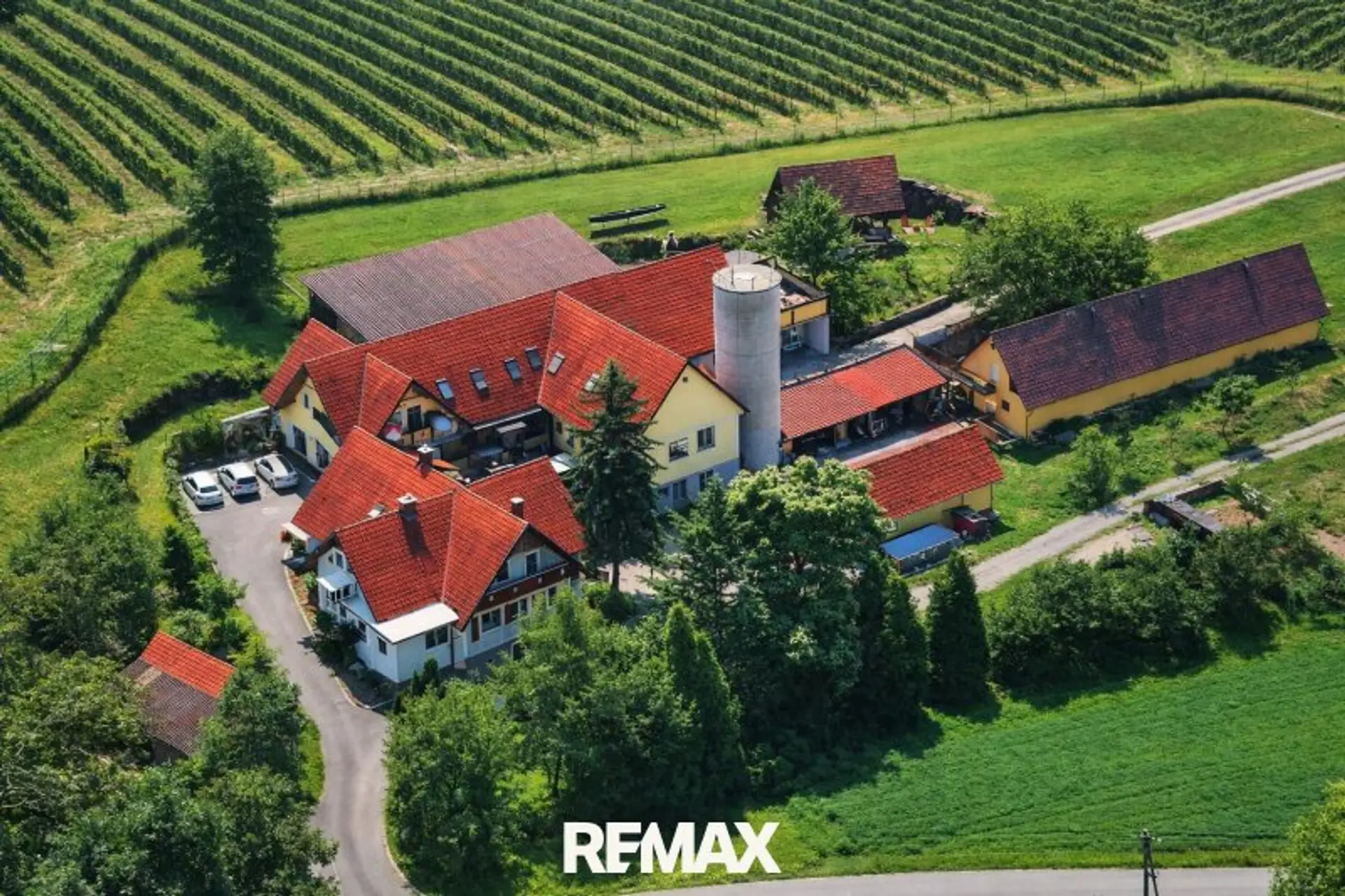 Darüber hinaus umfasst die Liegenschaft ein weiteres Wohnhaus mit zwei geschaffenen Wohneinheiten im Ausmaß von ca. 260 m² Wohnfläche und mehrere wirtschaftliche Nebengebäude, die den landwirtschaftlichen Charakter des Anwesens unterstreichen. Dazu zählen unter anderem ein Kellerstöckl mit traditionellem Weinkeller, Wirtschaftsgebäude, Werkstatt, Garagen und Gerätelager sowie vorhandene Siloanlagen.