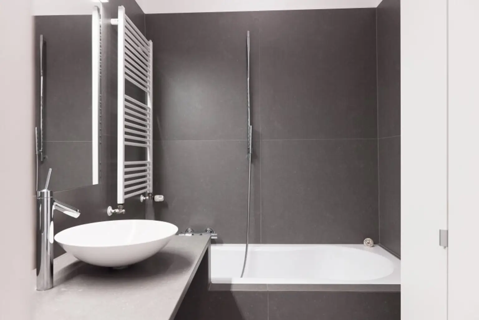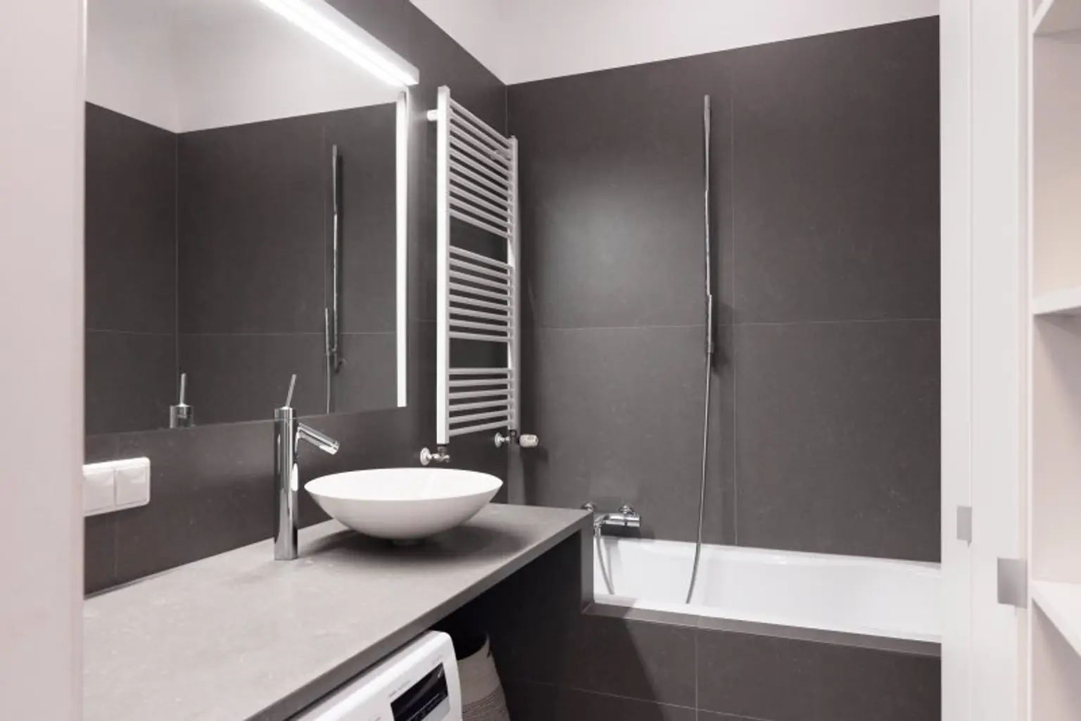 Großformatige Fliesen in Küche, Bad und Vorraum