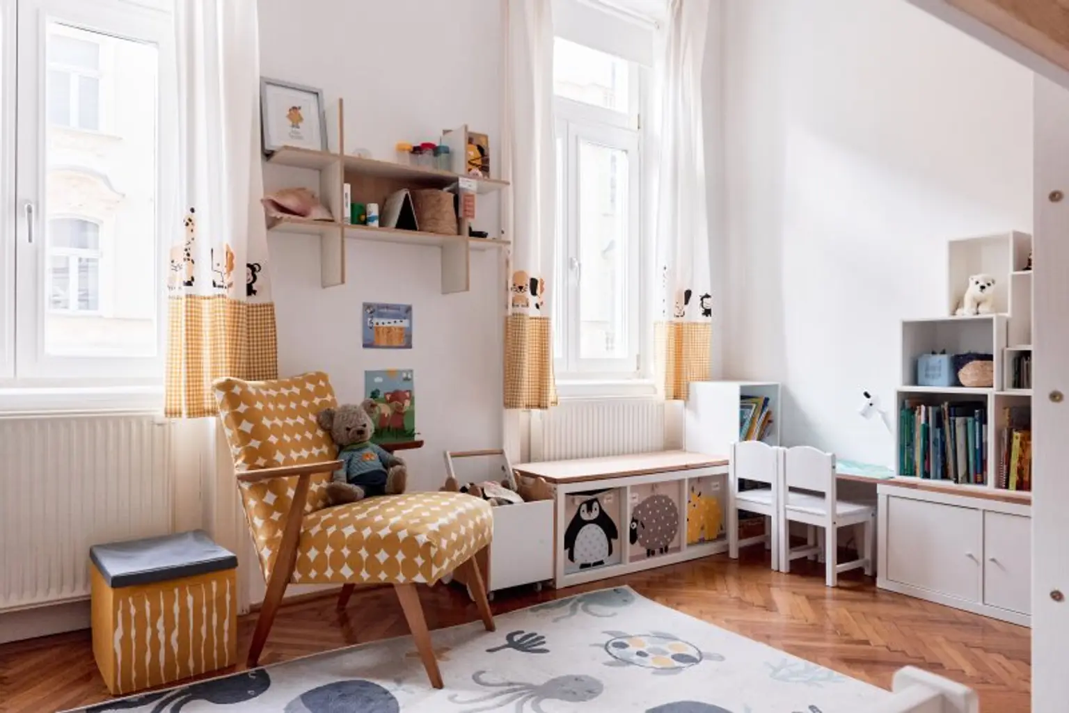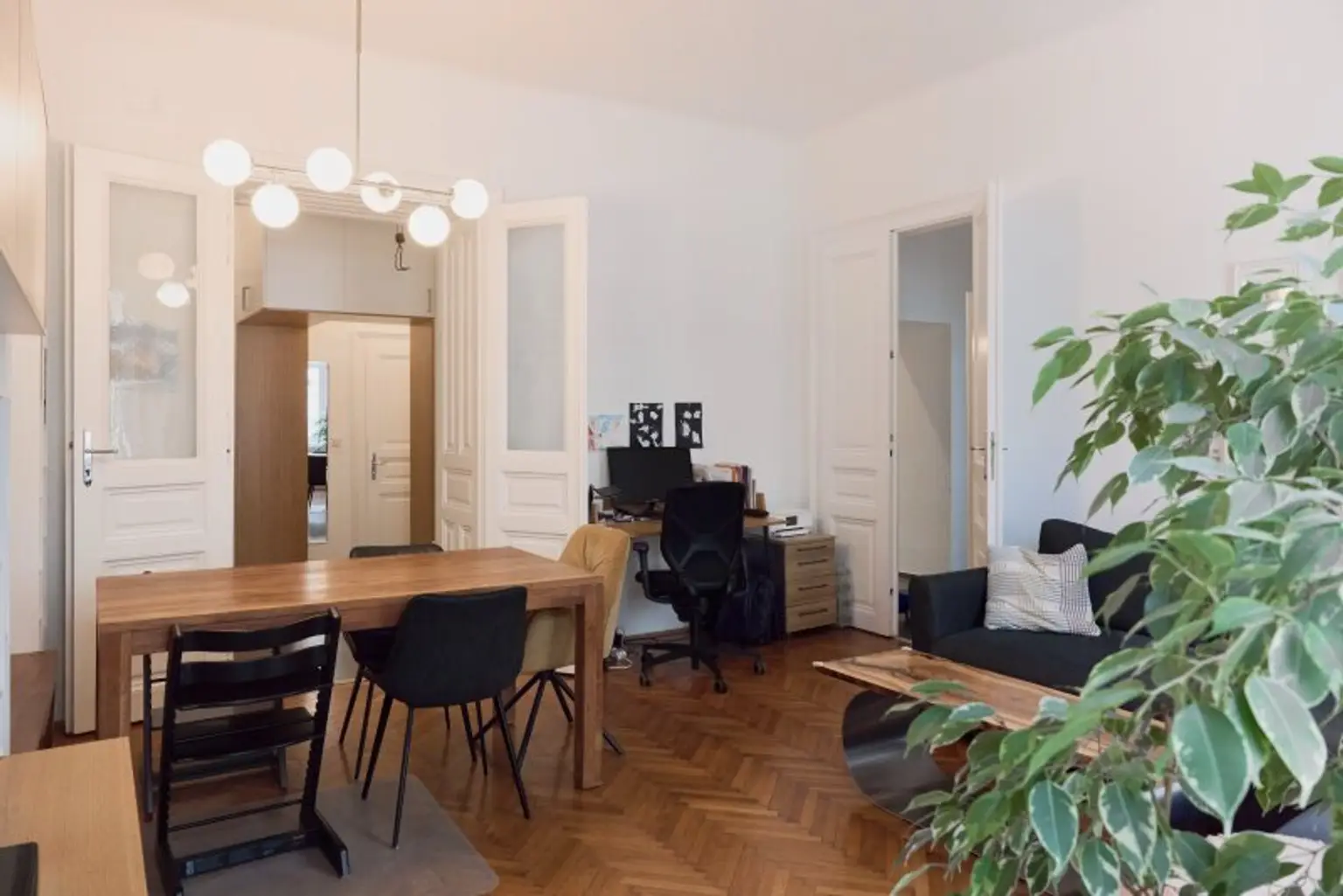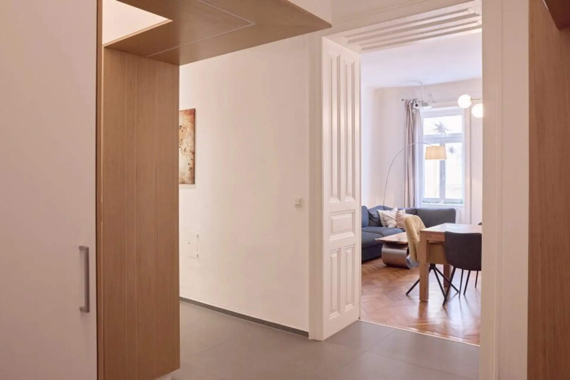 Der moderne, durchdachte Grundriss bewahrt den Altbau-Charakter und sorgt gleichzeitig für optimale Alltagstauglichkeit. Sämtliche Zimmer sind zentral begehbar. Durch die ost- und westseitige Ausrichtung kann die Wohnung gut durchgelüftet werden.