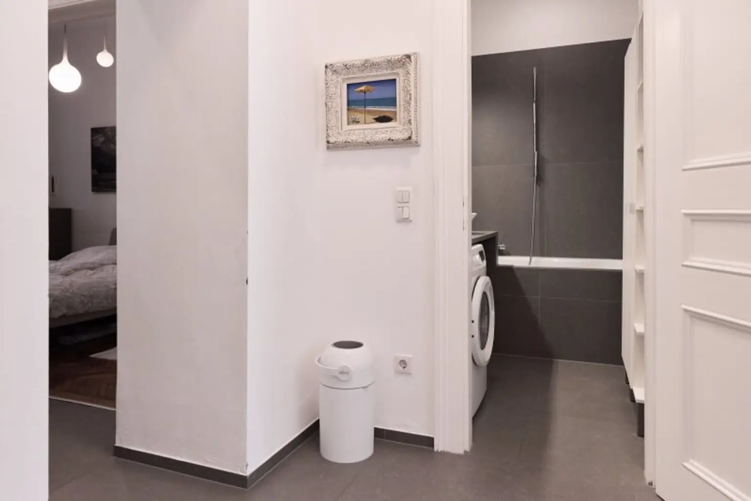 Zwei elegant gestaltete Badezimmer bieten zusätzlichen Komfort: ein großes Badezimmer mit Badewanne sowie ein zweites kleineres Badezimmer mit Walk-in-Dusche und WC.