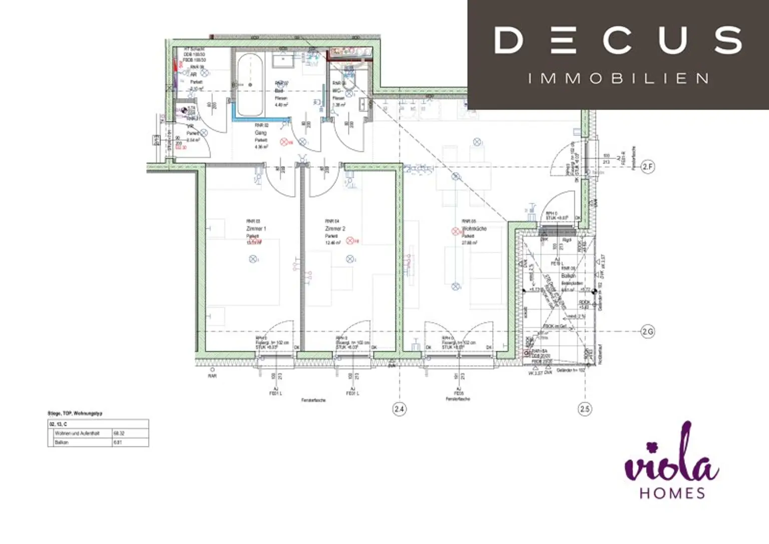 Die Wohnung in Stiege 2 Top 13 befindet sich im 2. Obergeschoß und teilt sich wie folgt auf: