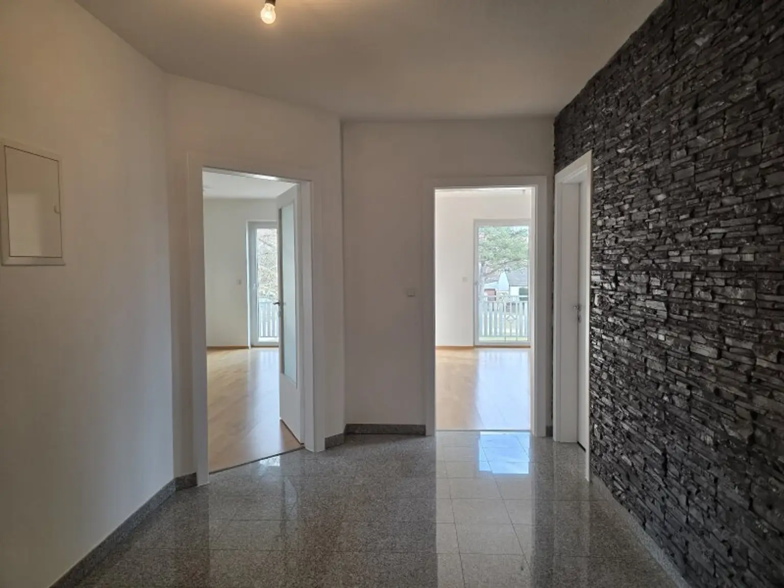 Die Wohnung wurde soeben neu weiß ausgemalen.