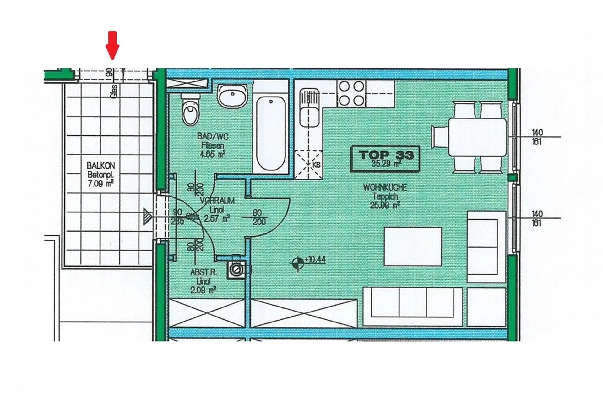 - hofseitiger Balkon (ca. 7 m²)